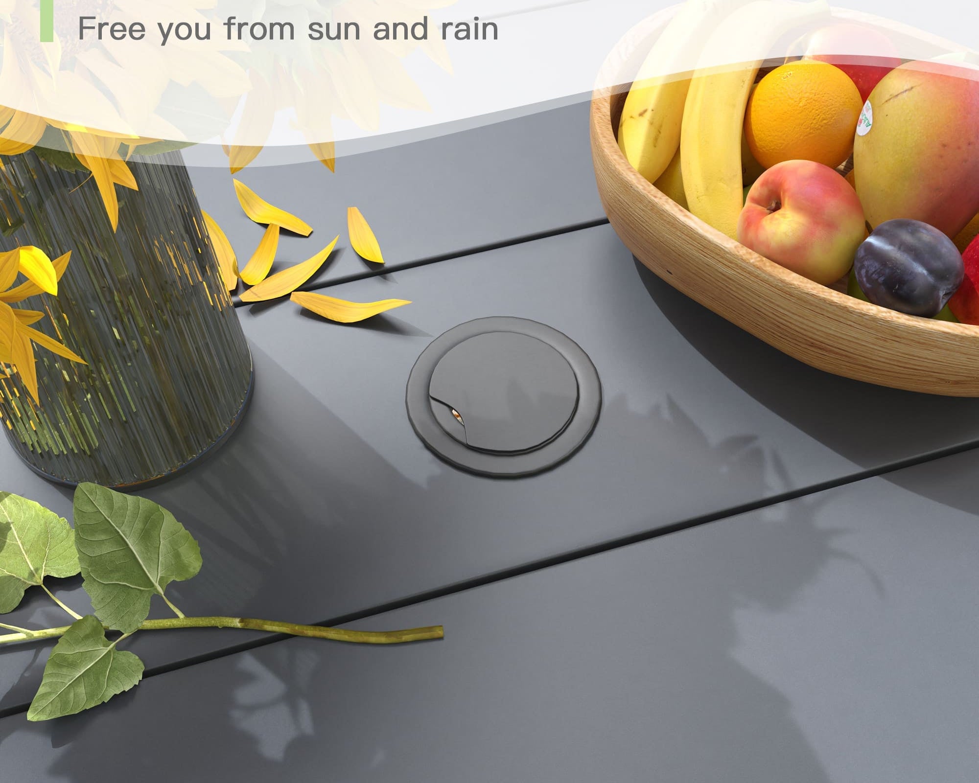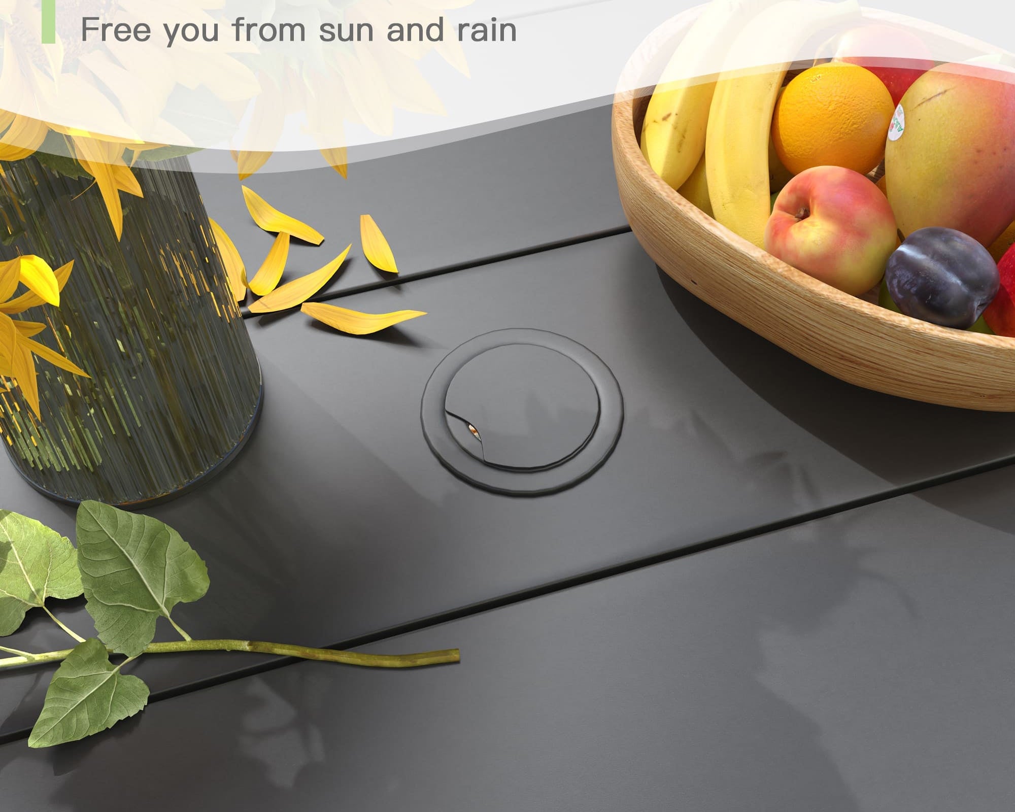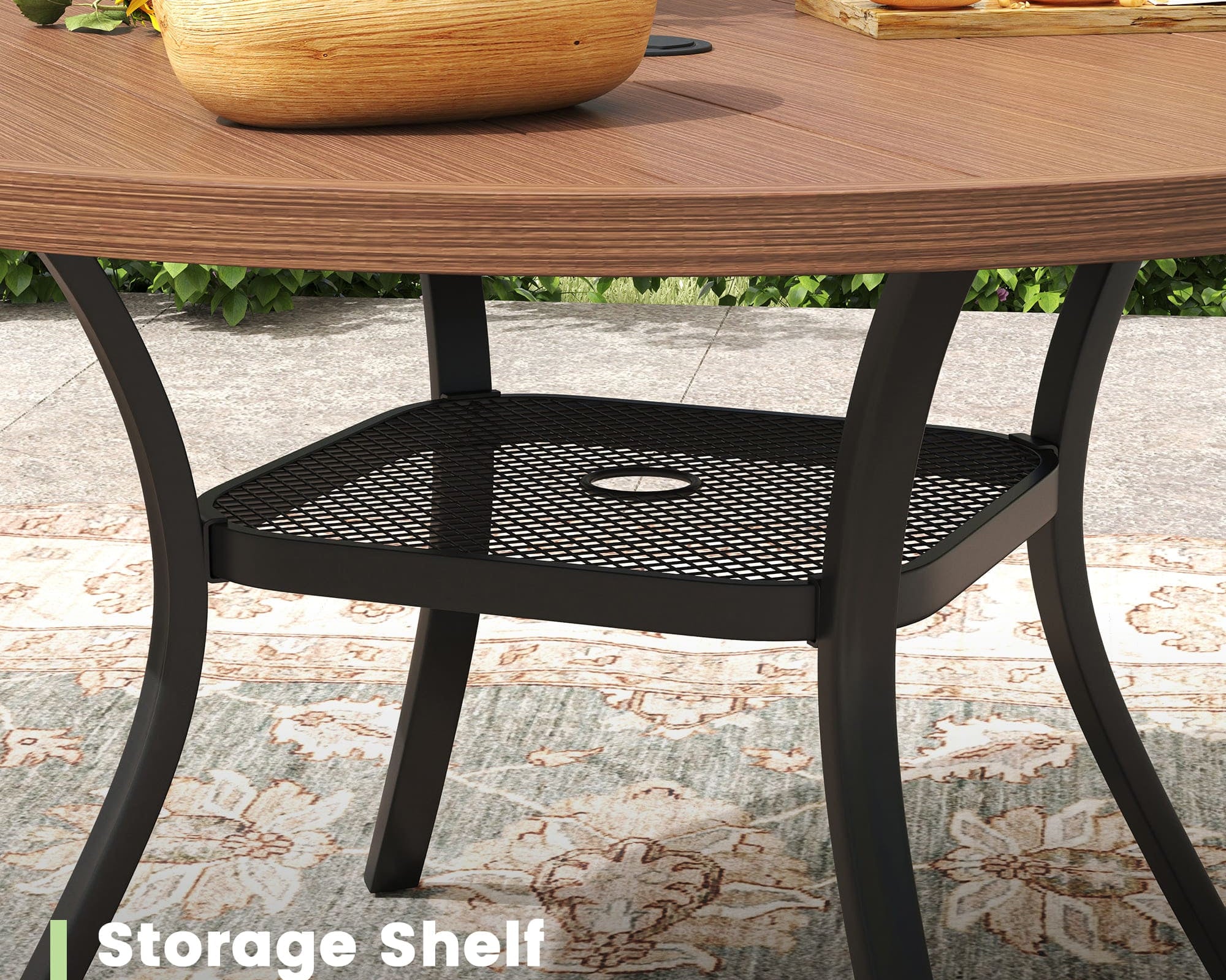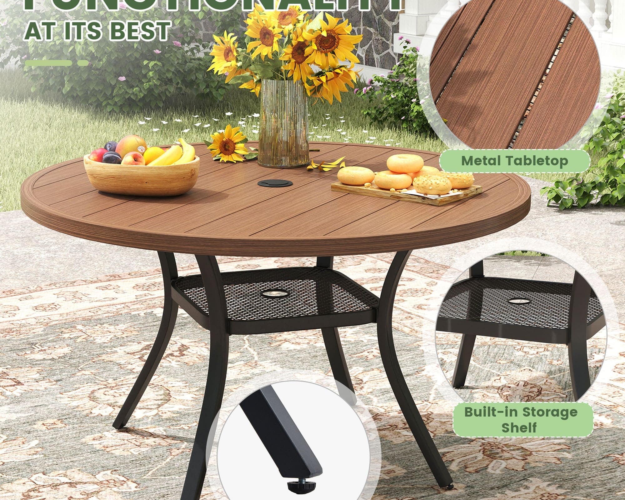 Vicllax Patio Dining Table for 4/6, Metal Dining Table with Umbrella Hole