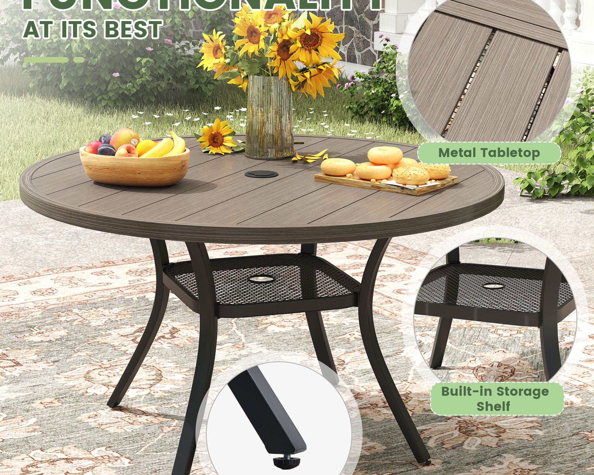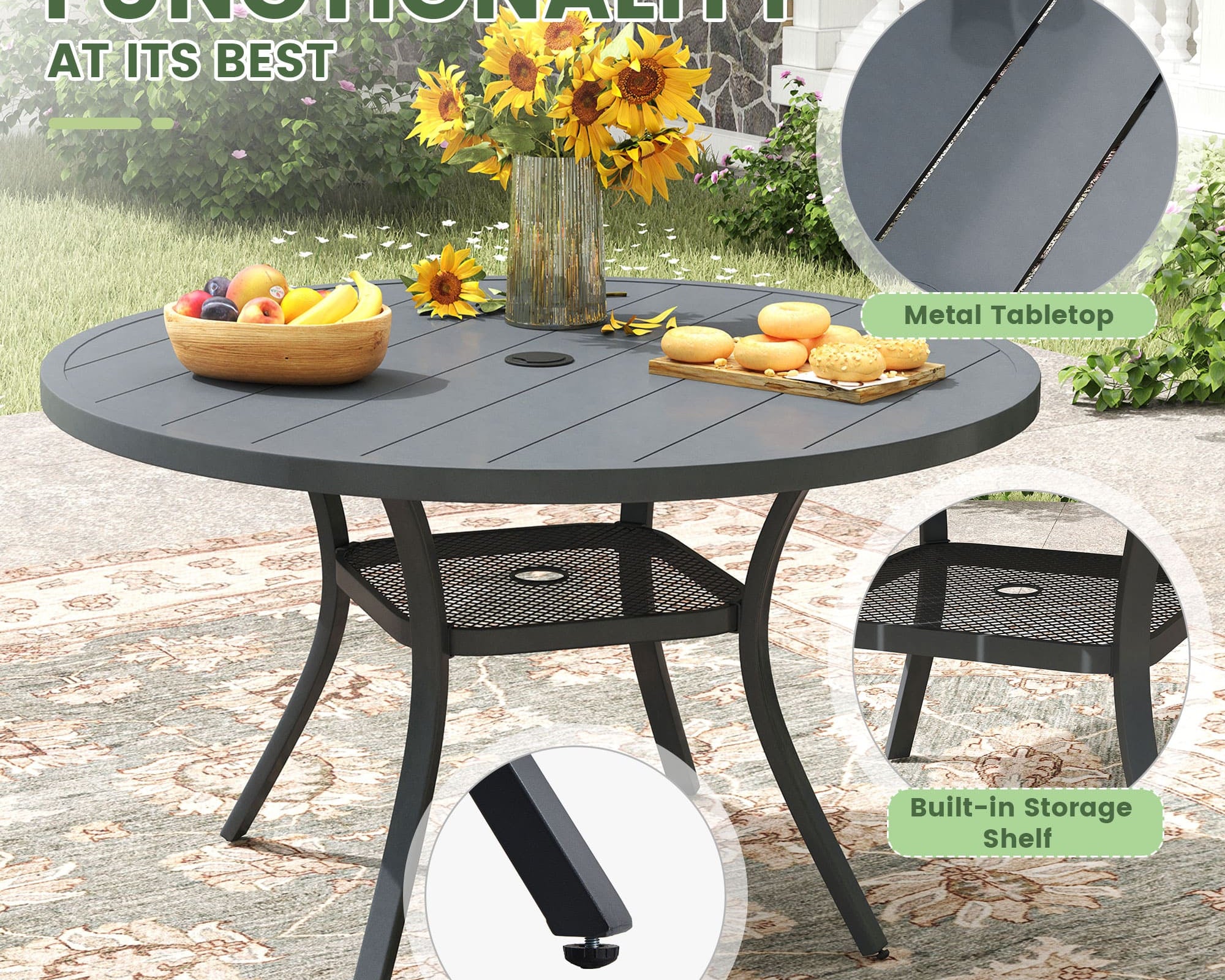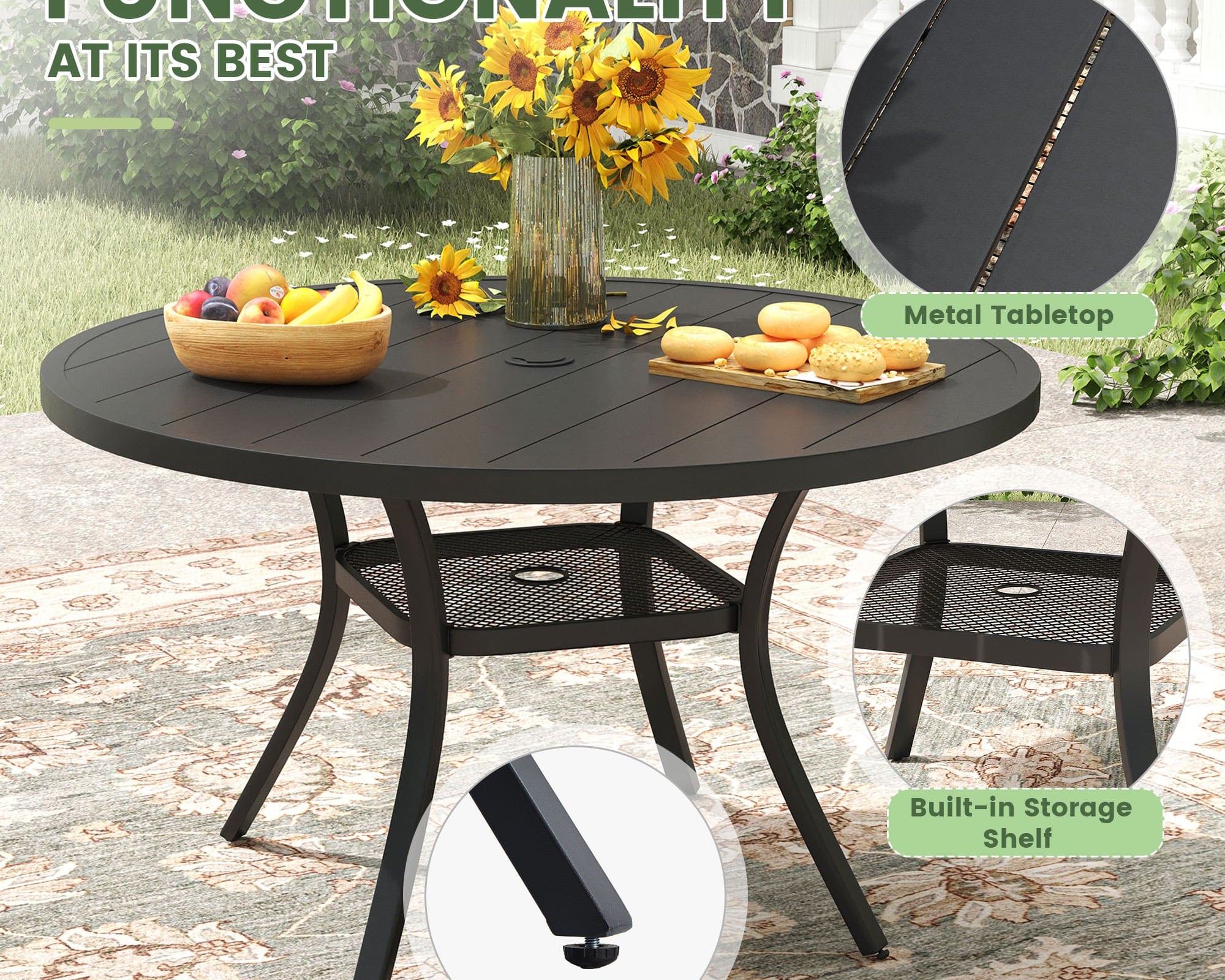 Vicllax 50” / 60" Outdoor Round Metal Dining Table with Umbrella Hole for 6,8