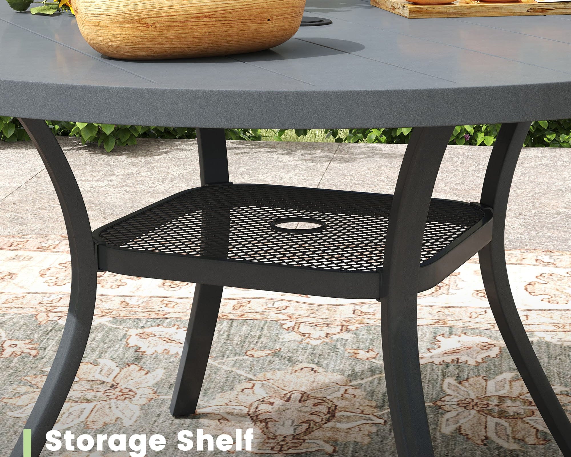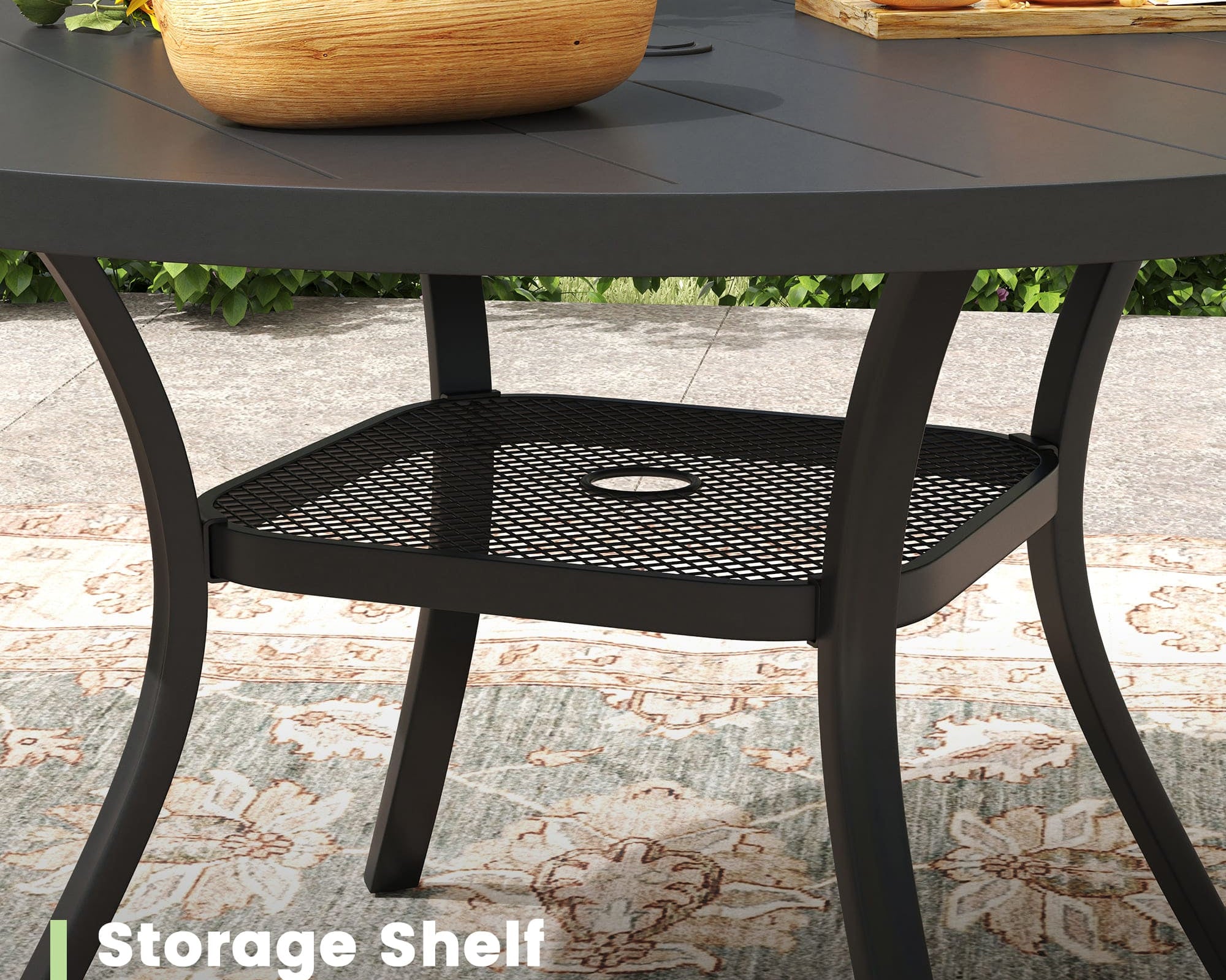 Vicllax Outdoor Round Dining Table, Patio Aluminum Tabletop with Storage Shelf