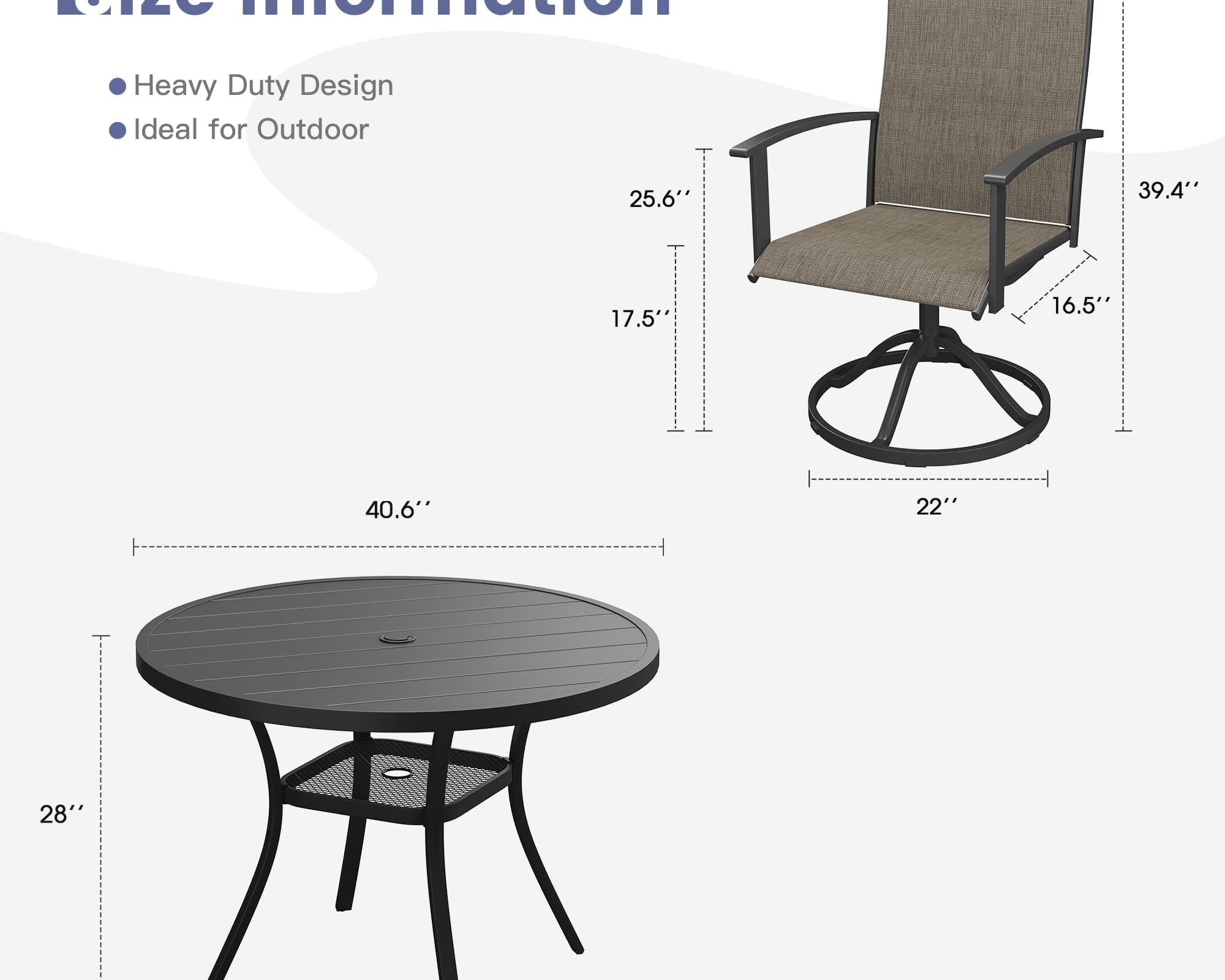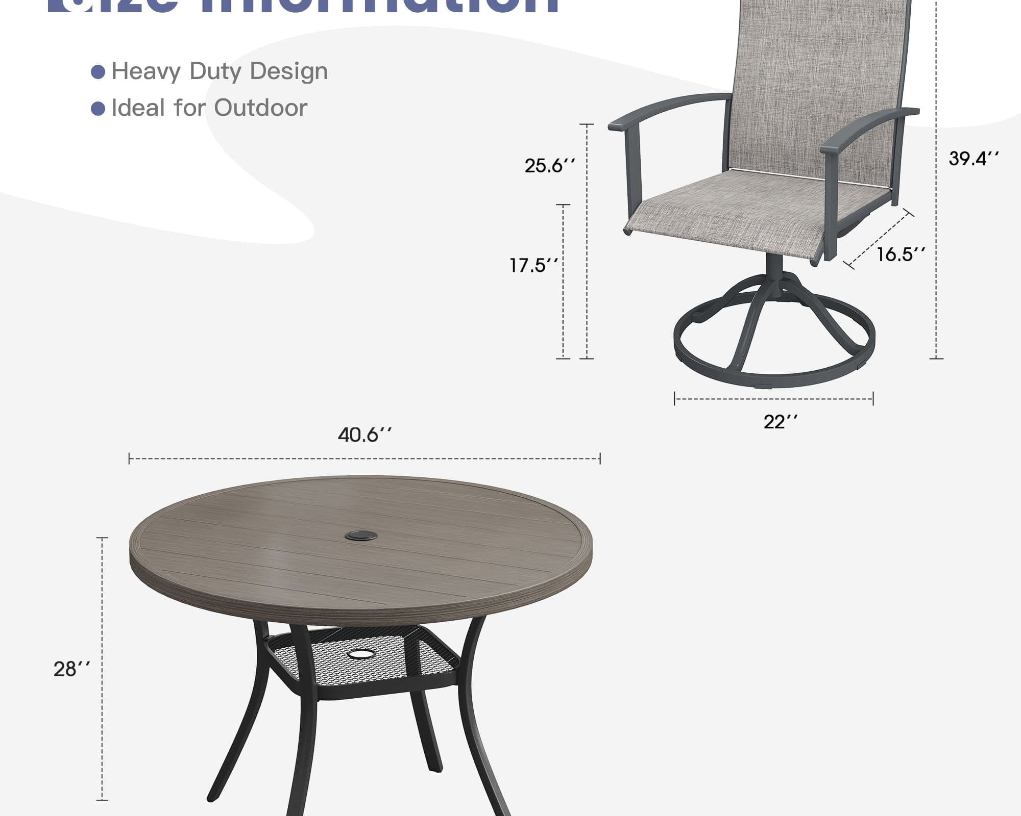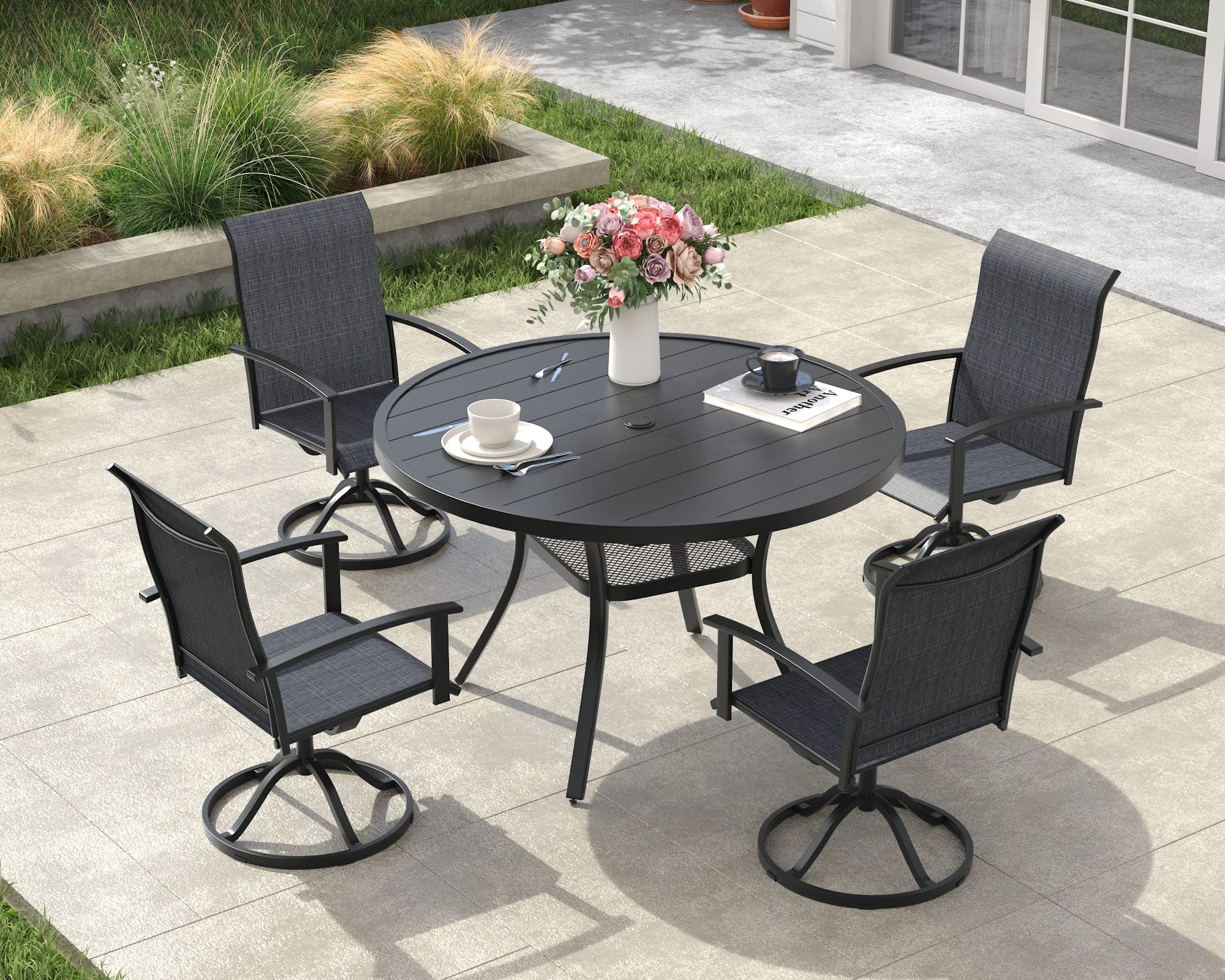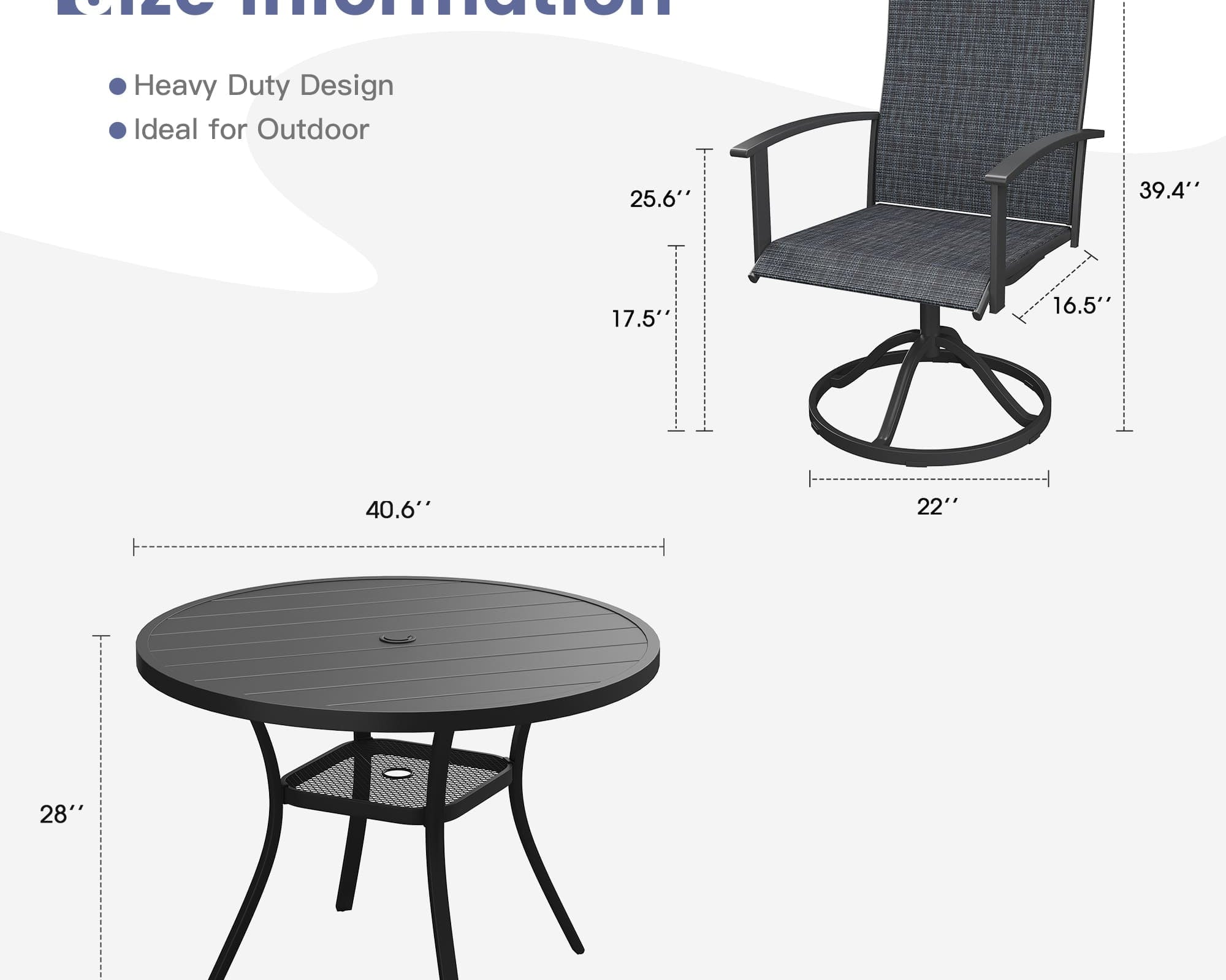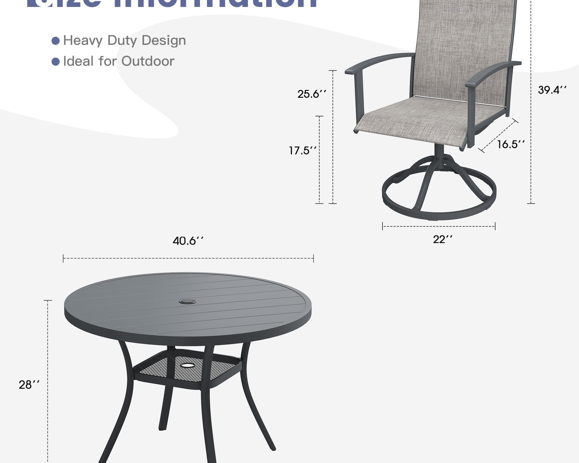 Vicllax 5-Piece Patio Dining Set, 40" Round Dining Table and Patio Swivel Chairs