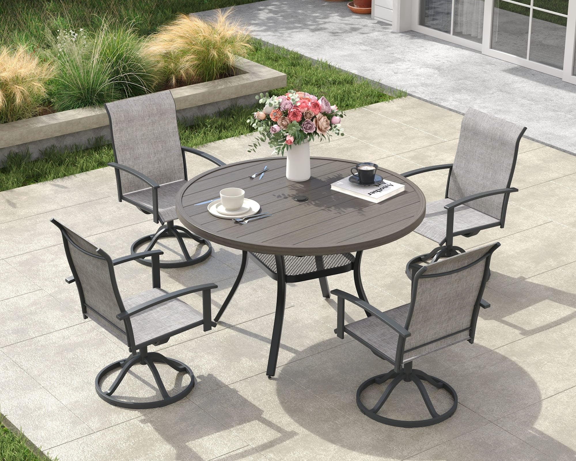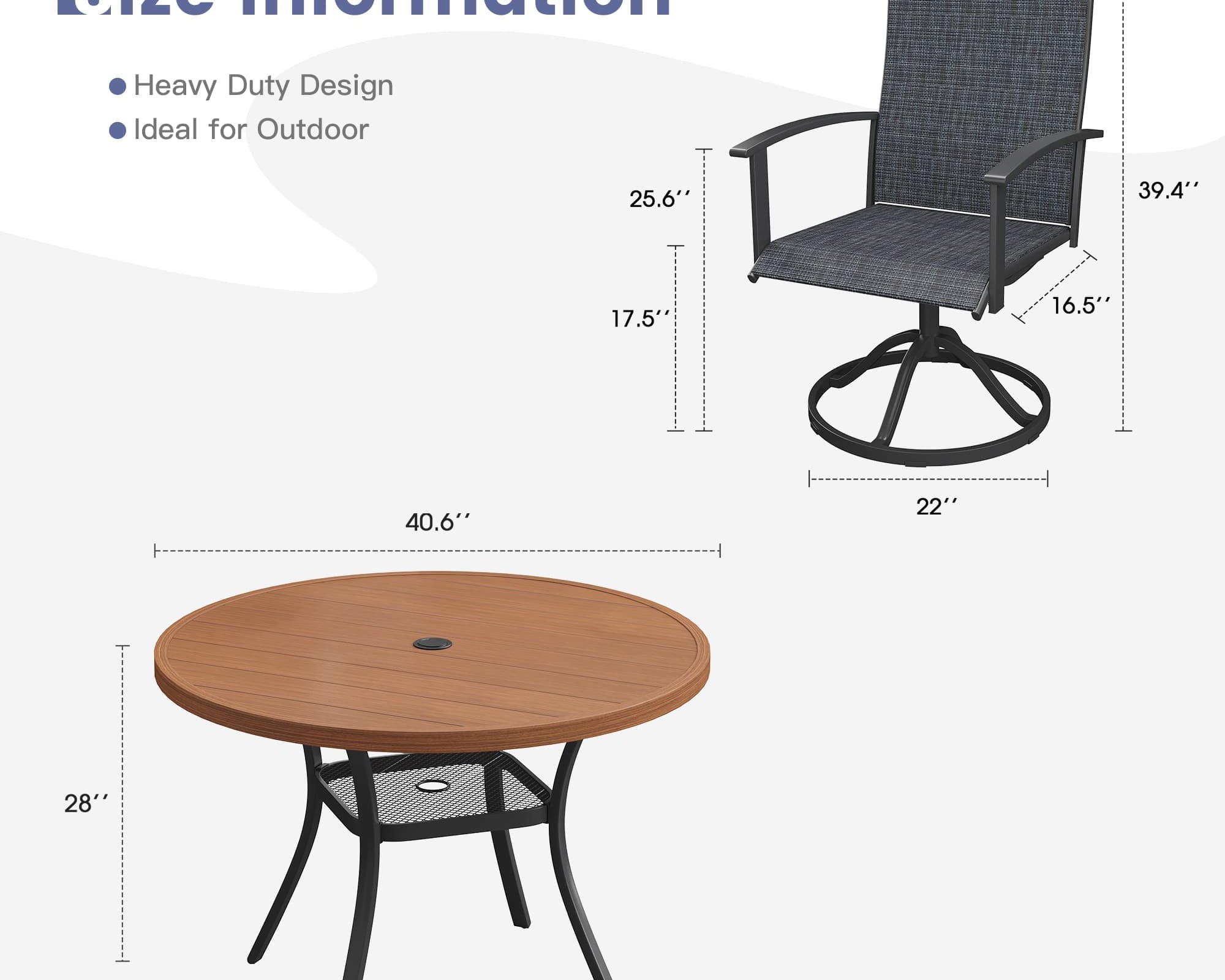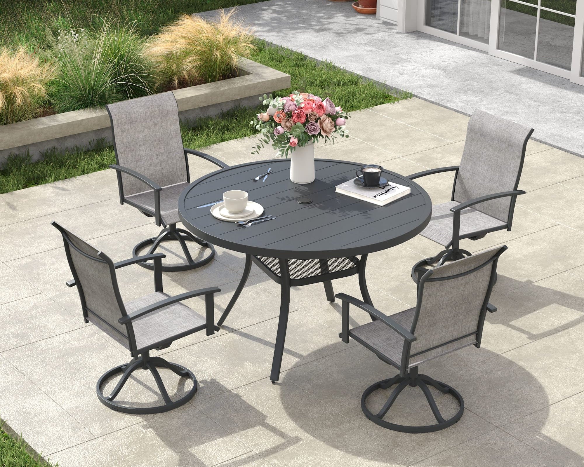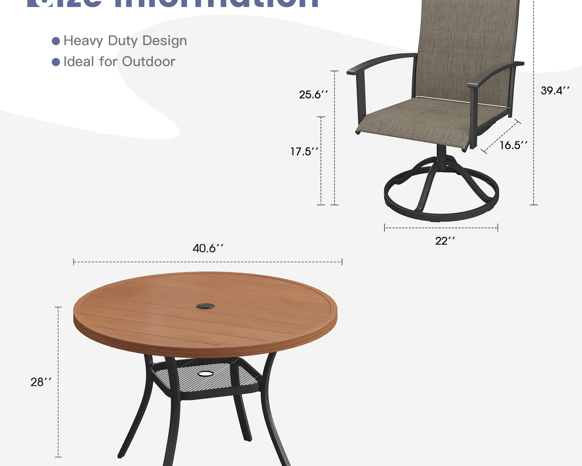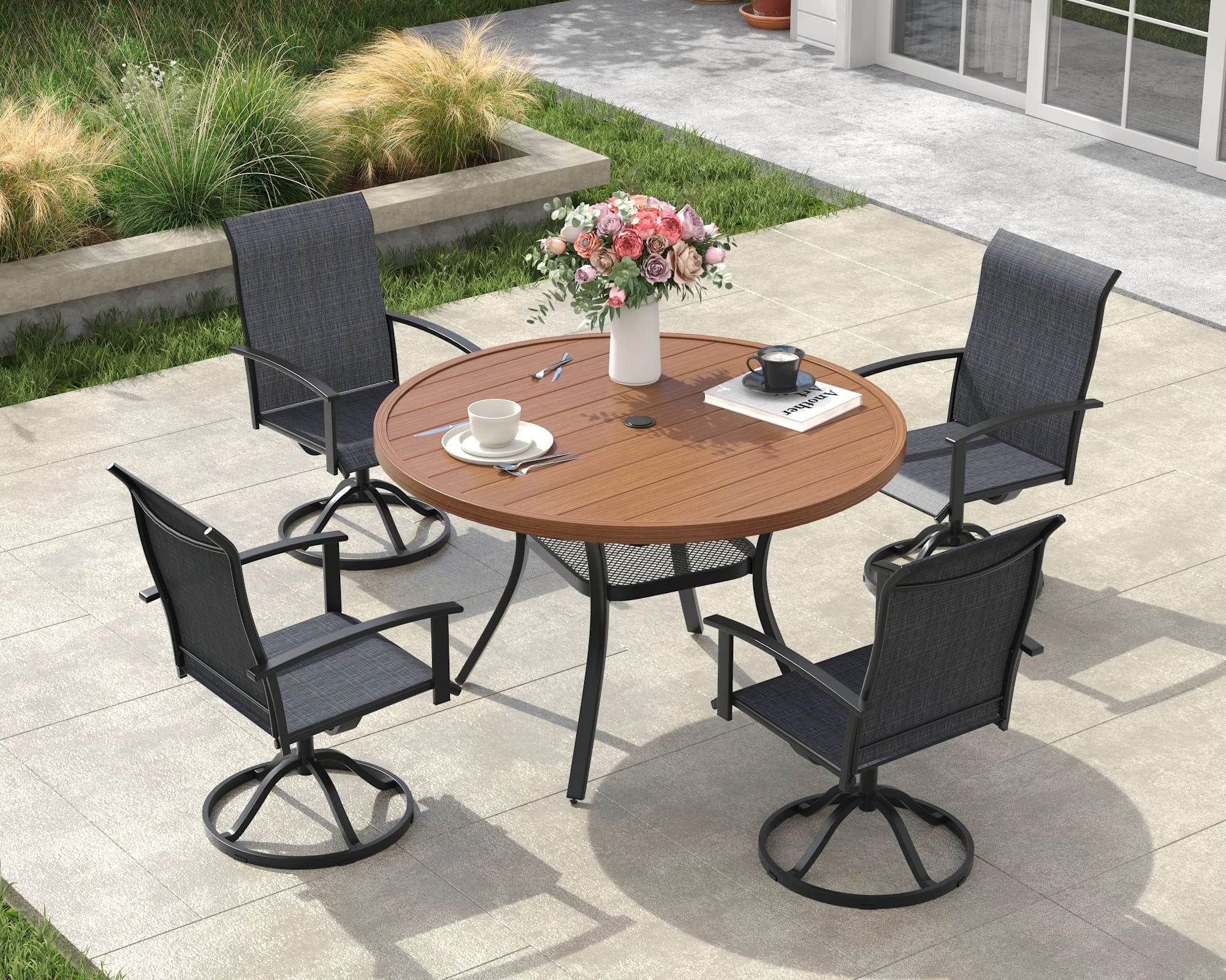 Vicllax 5-Piece Patio Dining Set, 40" Round Dining Table and Patio Swivel Chairs