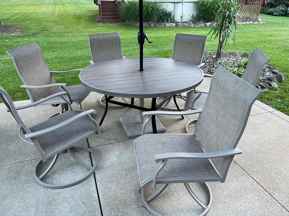 "We really like the chairs! They swivel and have a nice bounce when you sit in them, not a rocking chair but very comfortable. It’s so hard to find round table sets that seat six with a fair price, glad we found this one."