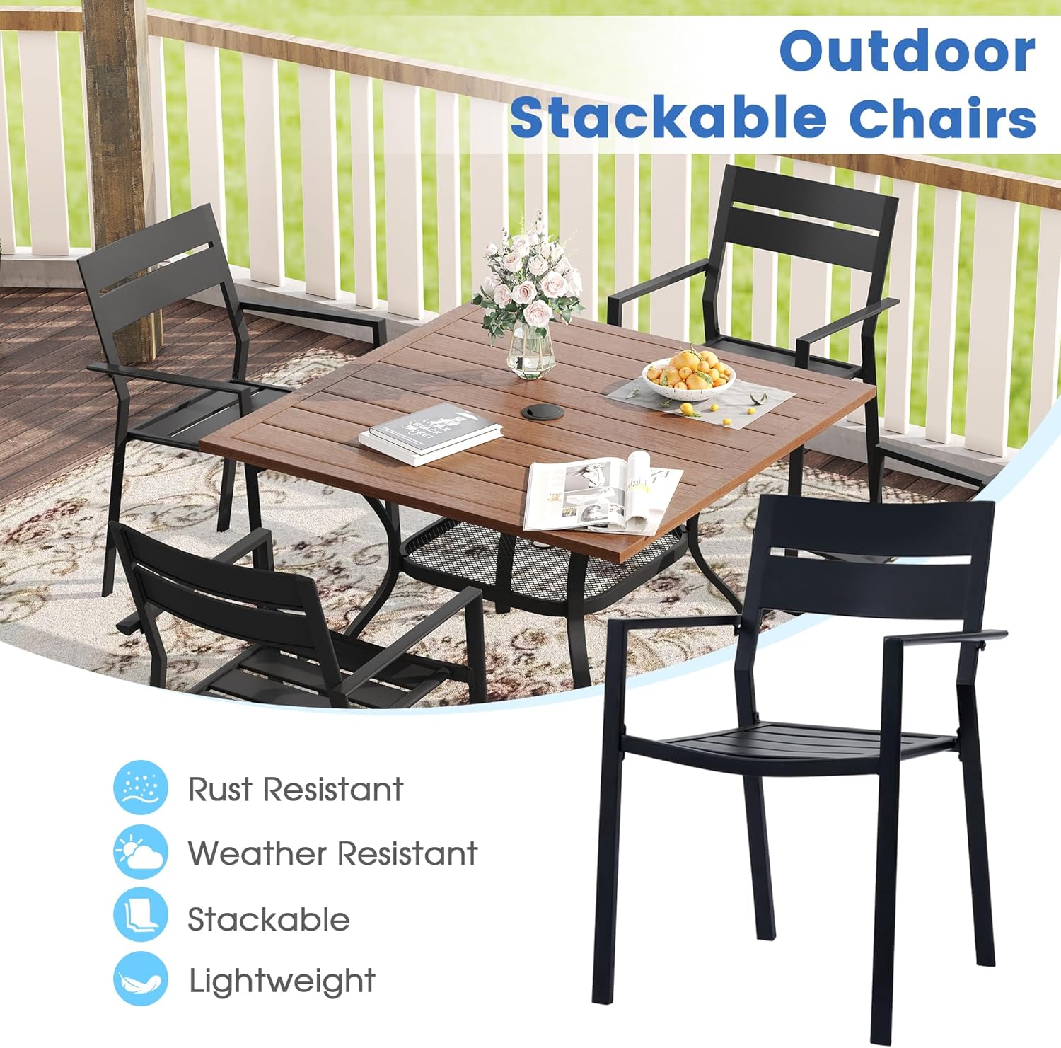 VICLLAX Patio 5 Pieces Outdoor Dining Set for 4, 37.8" Outdoor Square Table and Metal Stackable Chair