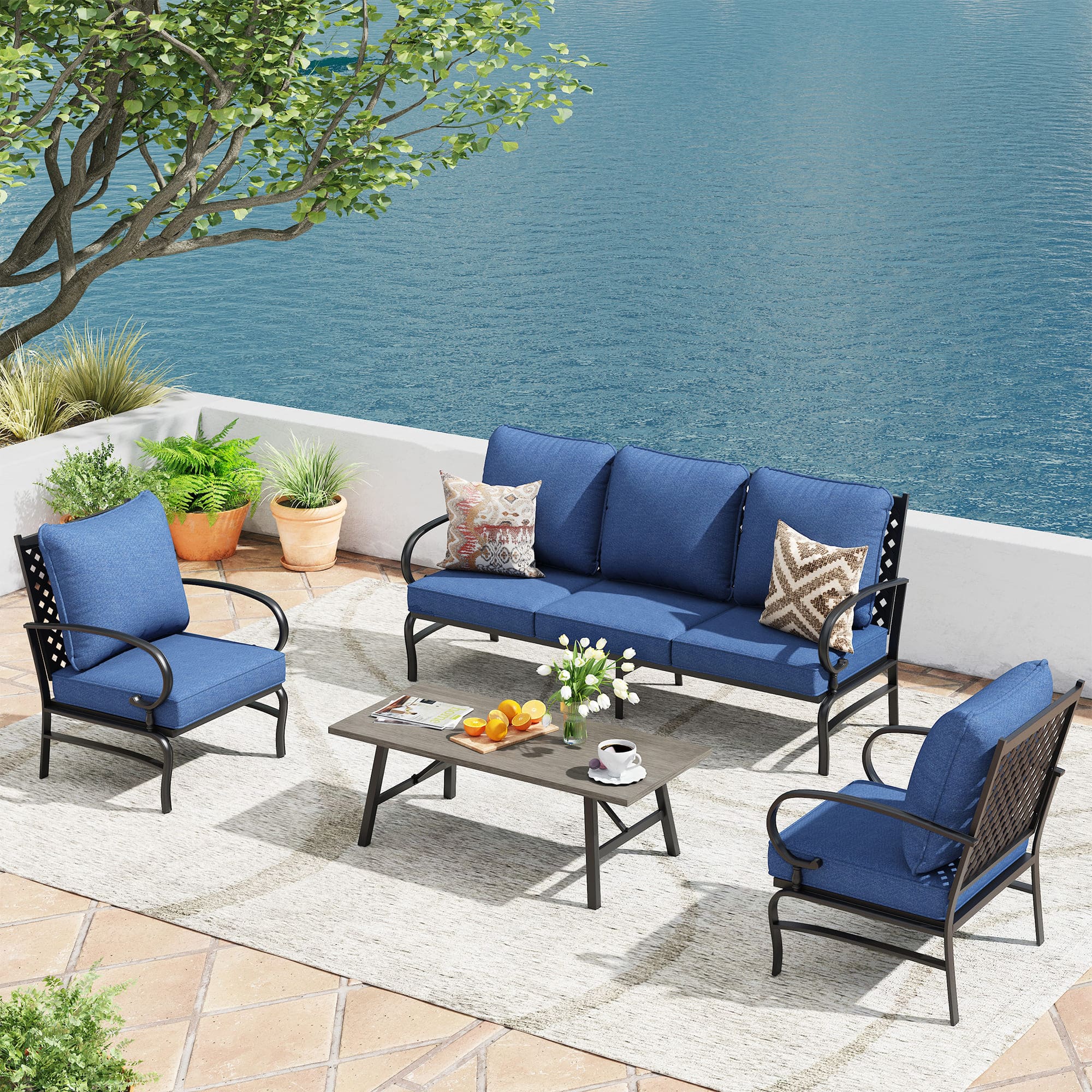 Vicllax Patio Conversation Set with Cushioned Sofa Chairs, Ottomans and Coffee Table(Beige or Navy Blue)