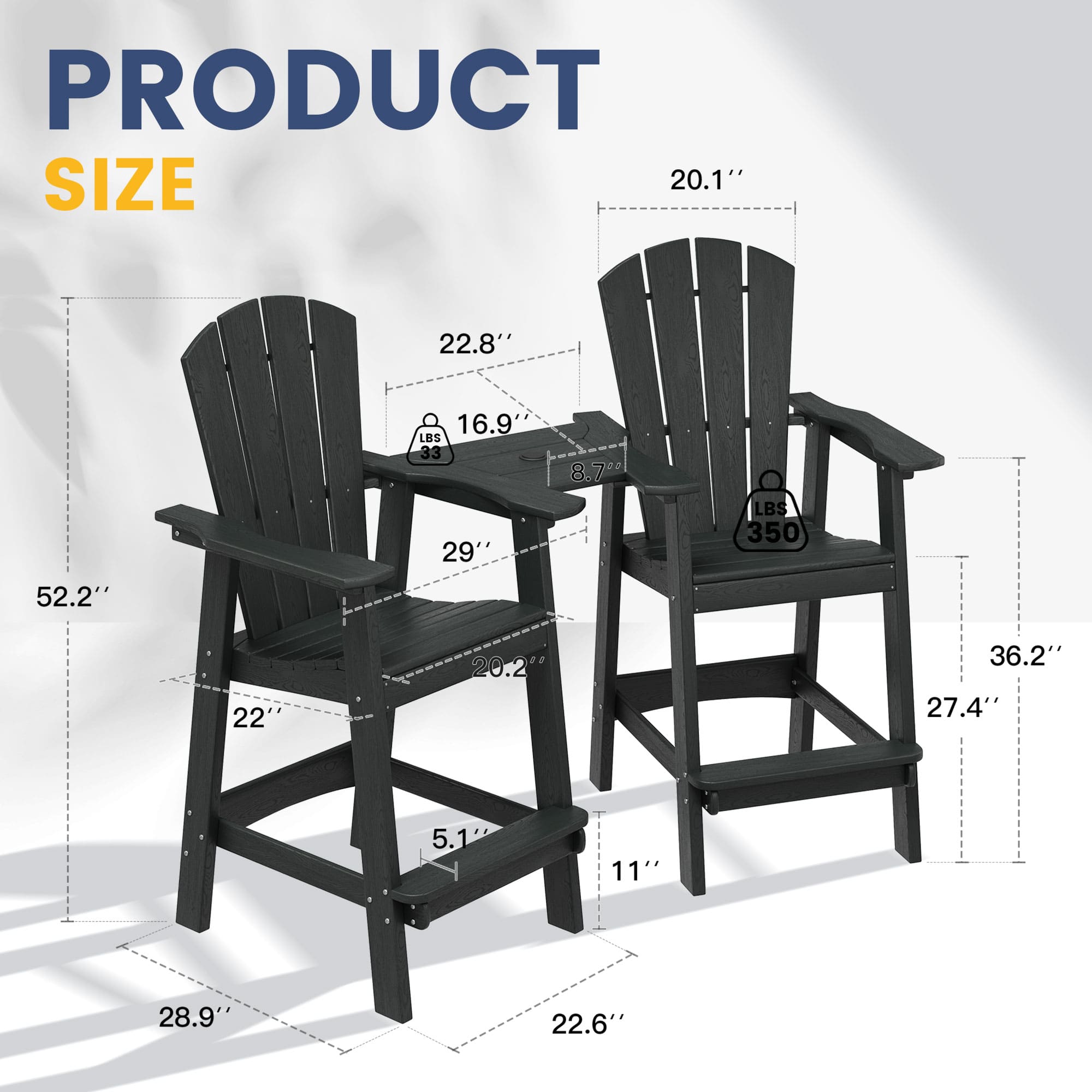 Vicllax Outdoor HDPE Adirondack Bar Chair, Patio Bar Stools with Umbrella Hole