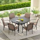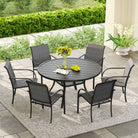Revamp your outdoor area with the Vicllax 7-Piece Outdoor Dining Set. It includes a sleek 42/48" round metal table with an umbrella hole, paired with Textilene armchairs. Durable, stylish, and ideal for outdoor gatherings.