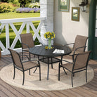 Vicllax 5/7 Pcs Outdoor Dining Set with Round Metal Table and Stackable Sling Chair