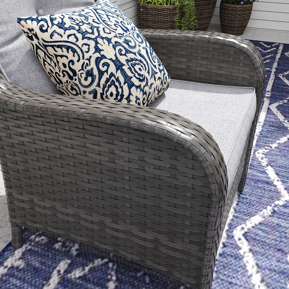 • Weatherproof materials: PE wicker + powder-coated steel frame