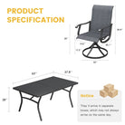 • Classic Design Aesthetics: Elevate your outdoor space with a timeless design that seamlessly combines the enduring lines of the metal table and the graceful swivel chairs.