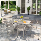 VICLLAX Patio 7 Pieces Outdoor Dining Set, 63" Rectangular Metal Dining Table and 6 Stackable Chairs for Lawn