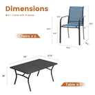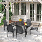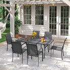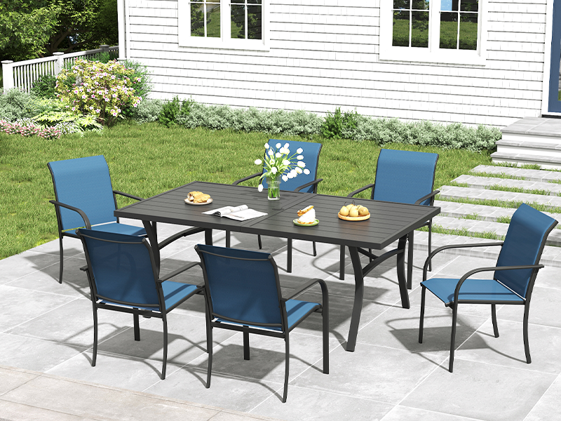VICLLAX Patio 7 Pieces Outdoor Dining Set, 63" Rectangular Metal Dining Table and Stackable Sling Dining Chair with Armrest