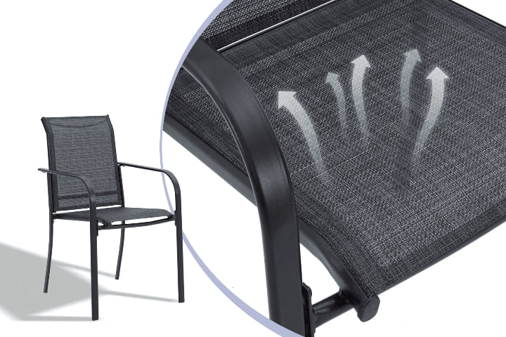 Stay cool and comfortable with our breathable Textilene fabric. Its unique texture promotes airflow for maximum comfort, ensuring relaxation even on hot days.