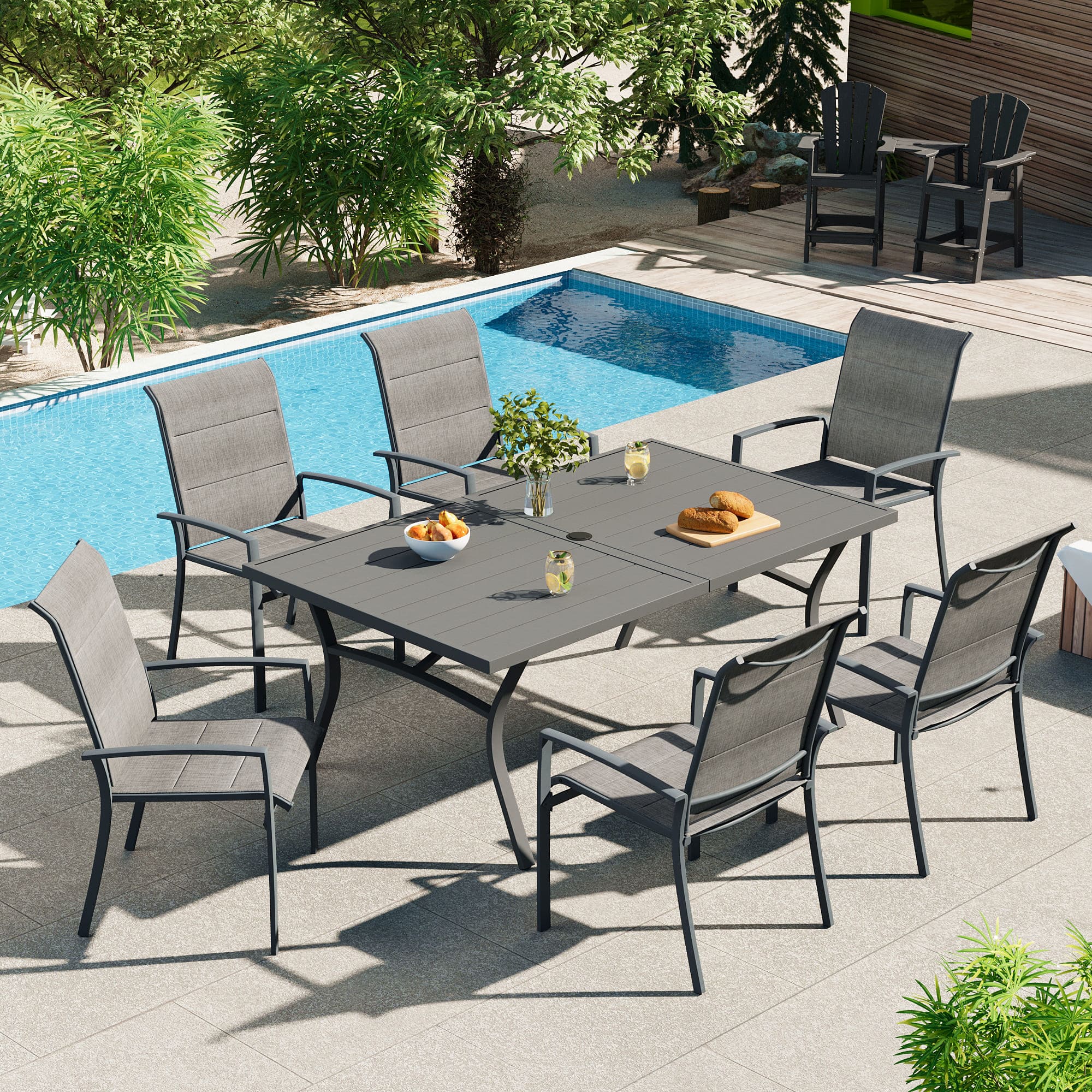Vicllax 7 Pieces Outdoor Dining Set, Metal 63" Rectangular Table and Padded Stackable Sling Chair
