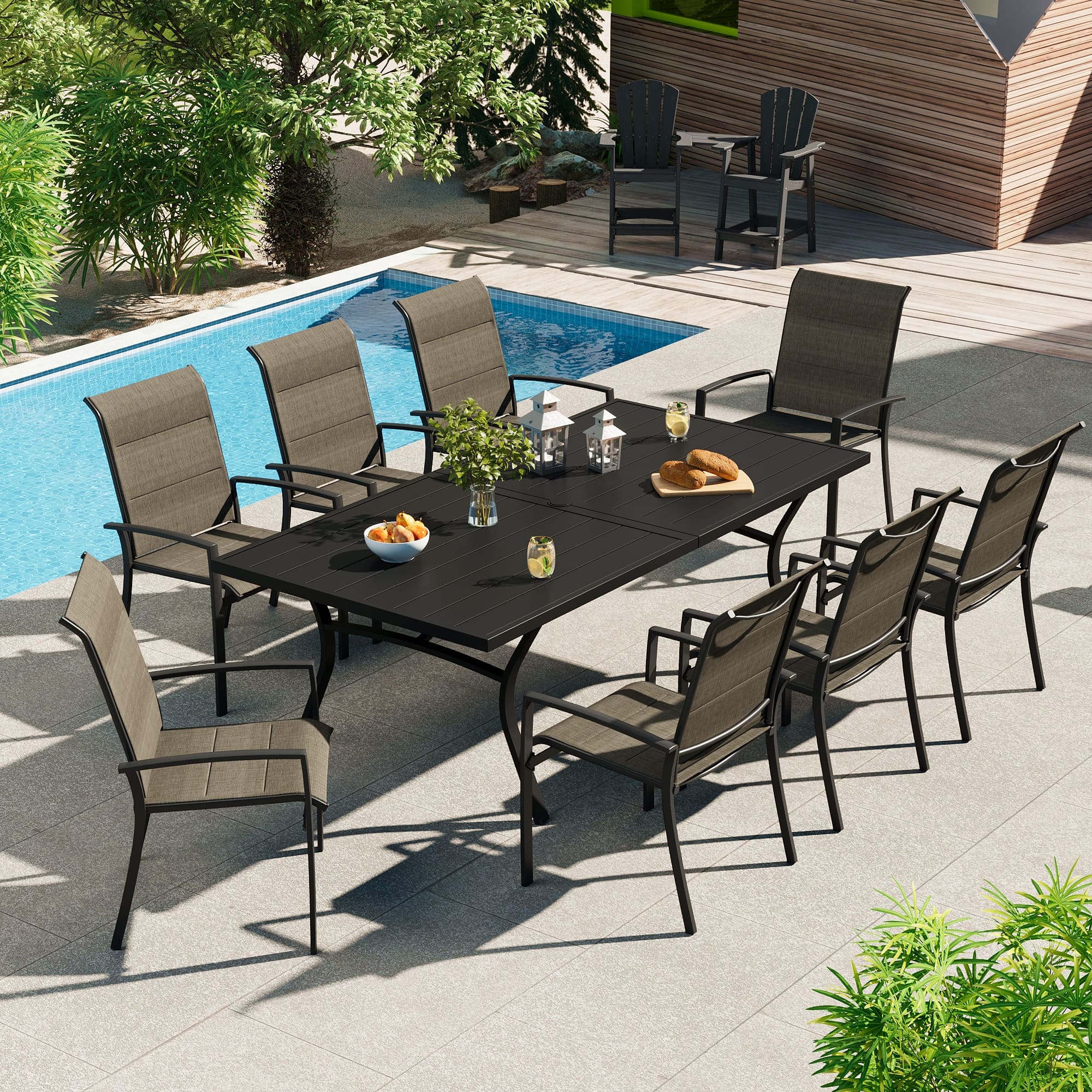 Vicllax 9 Pieces Outdoor Dining Set, Metal 70.9" Rectangular Table and Padded Stackable Sling Chair