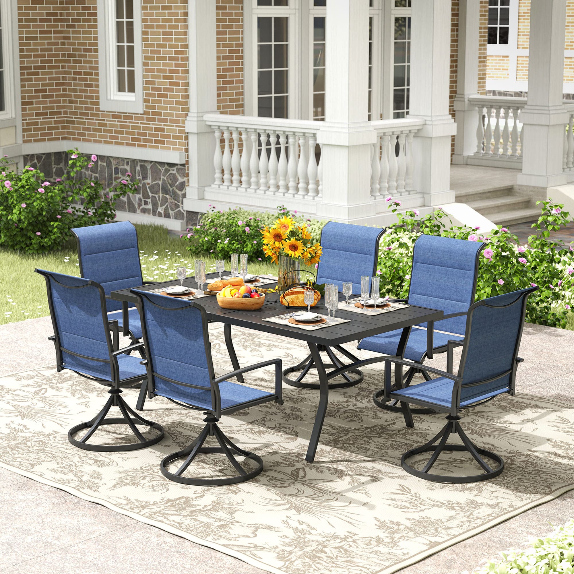 Vicllax 7 Pieces Outdoor Dining Set with Metal Rectangular Table and Padded Swivel Chair