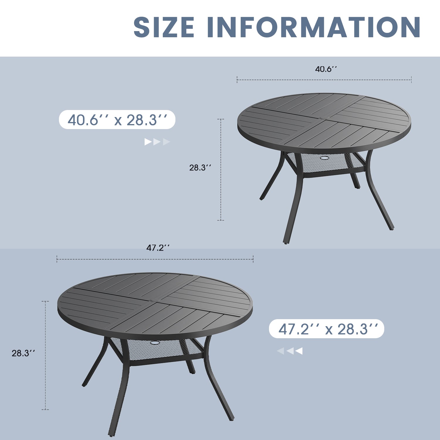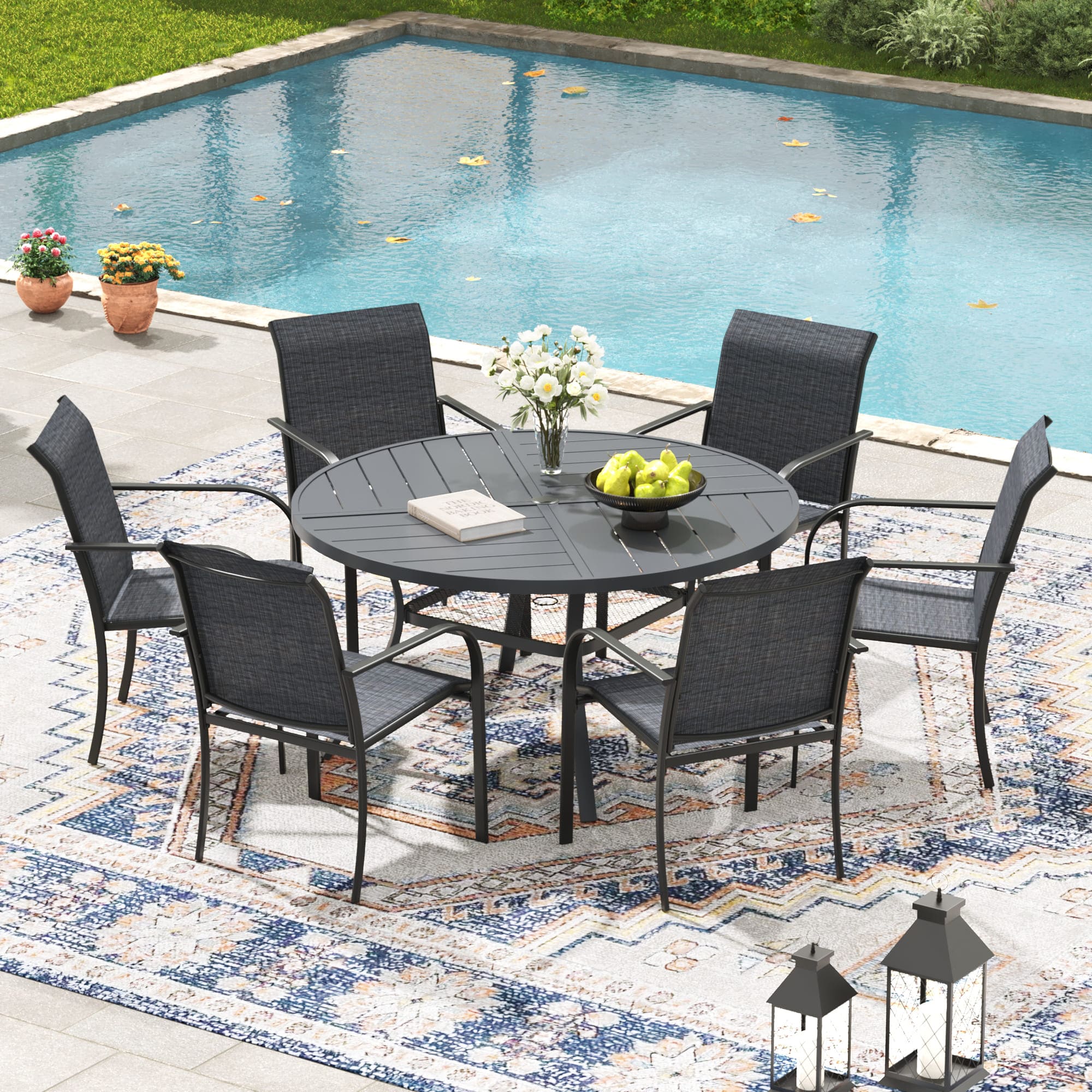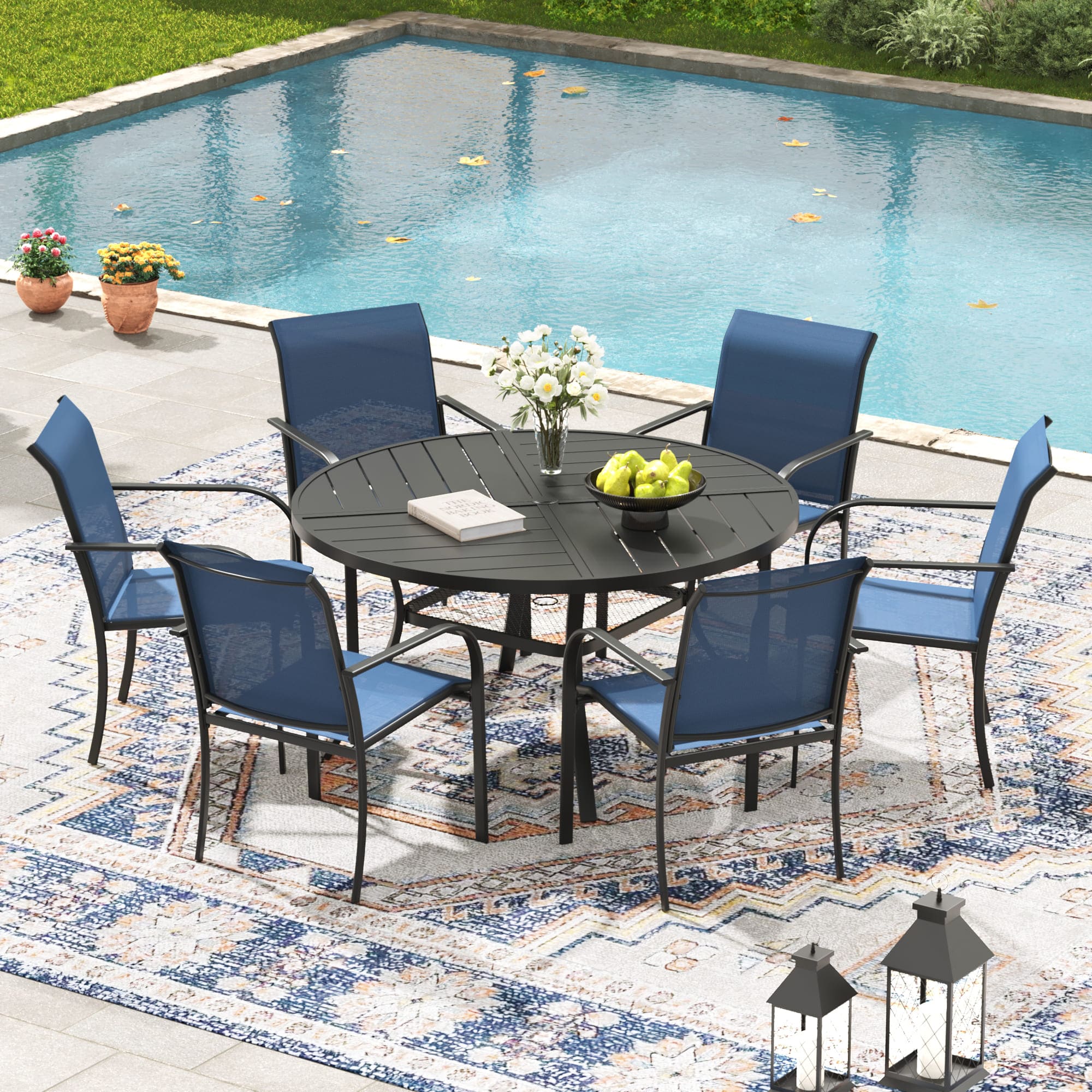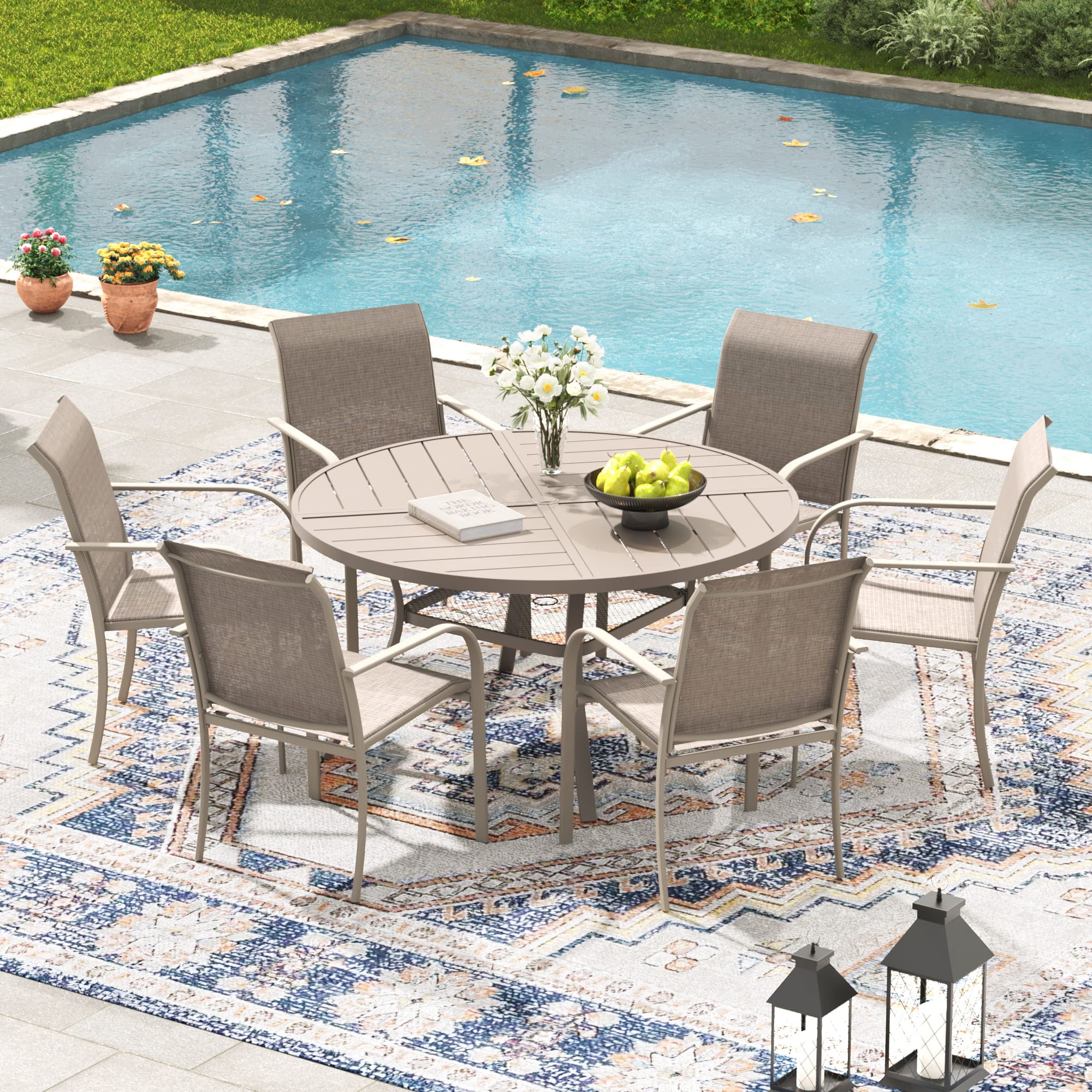 Vicllax 7 Pieces Outdoor Dining Set with 47" Round Metal Table and Armrest Chairs