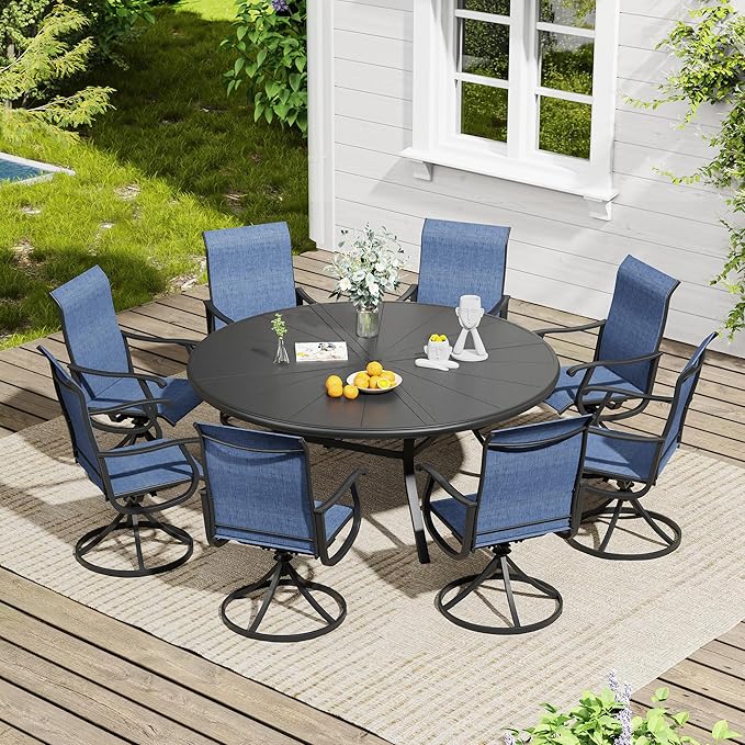 Vicllax 9 Pieces Outdoor Dining Set, 59.8" Metal Round Dining Table and Premium Swivel Chairs
