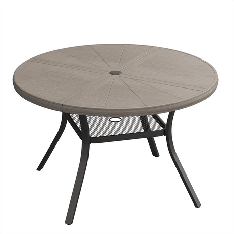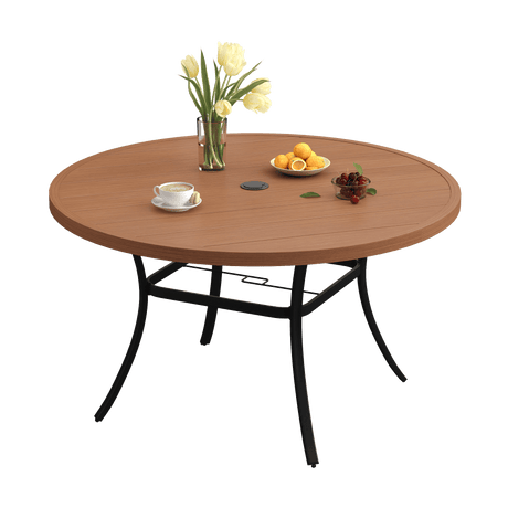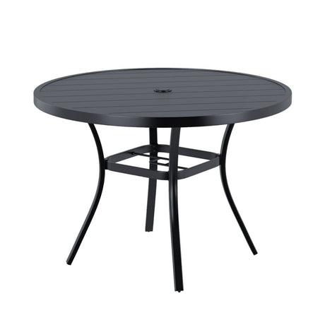 Vicllax Outdoor Round Metal Dining Table with Umbrella Hole for 4, 6