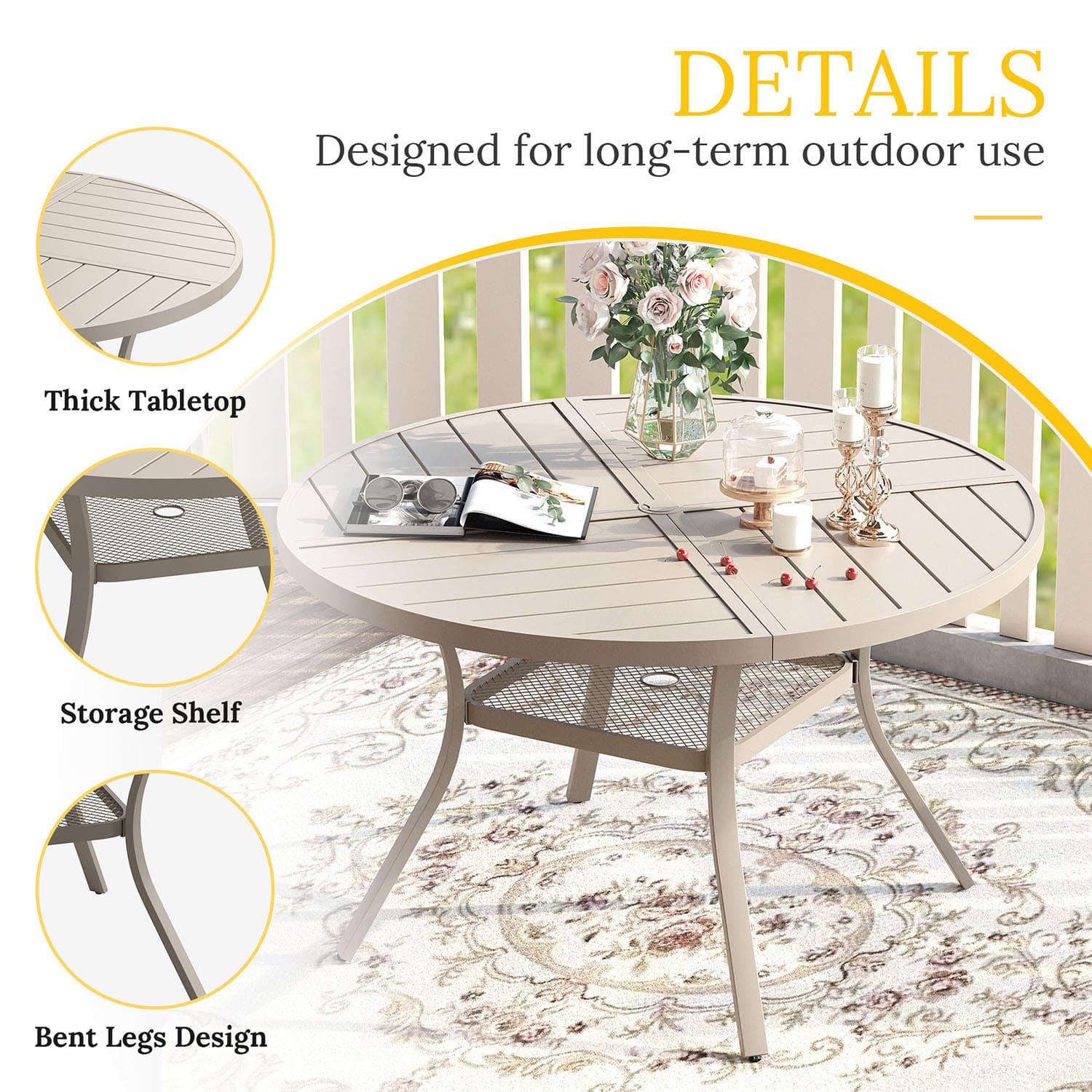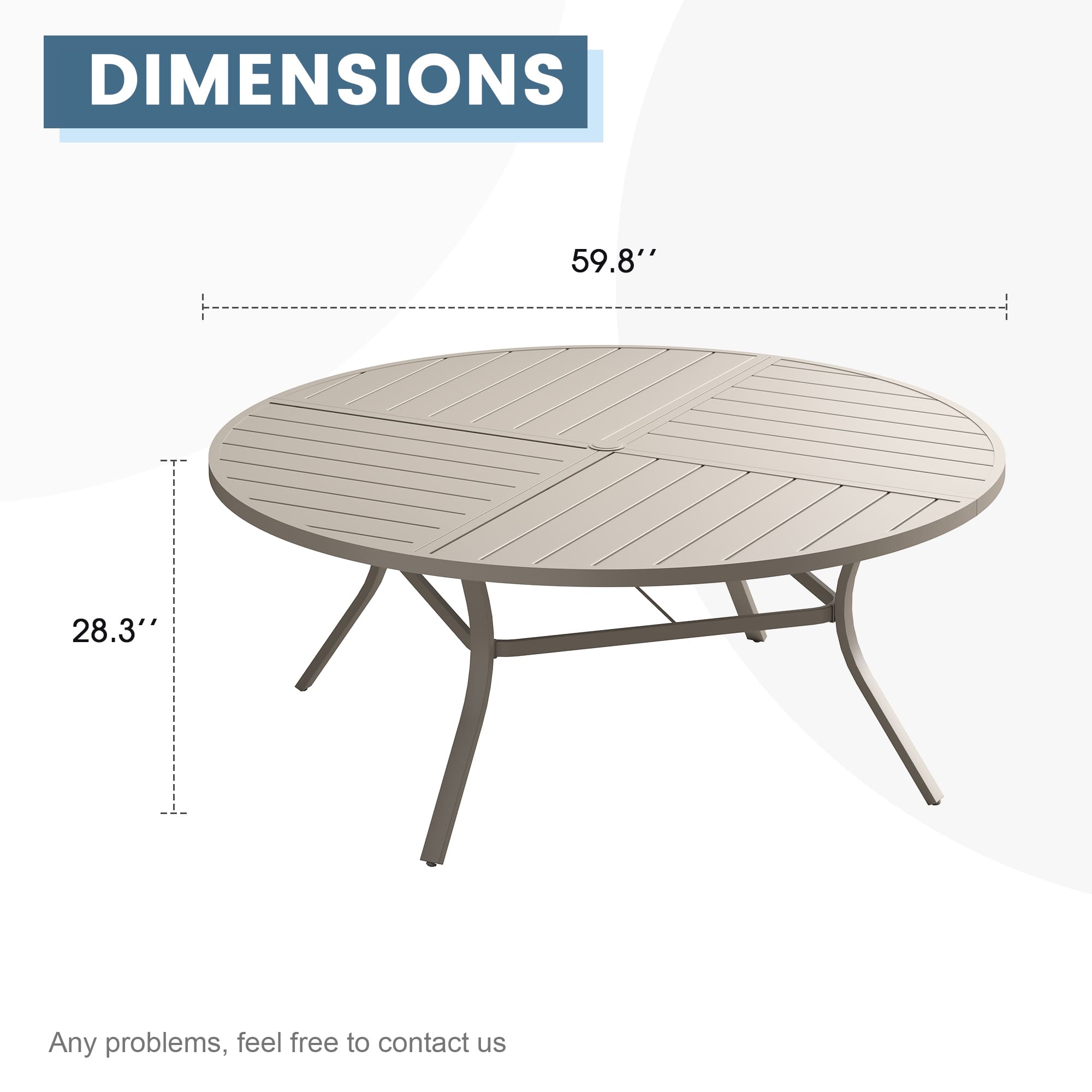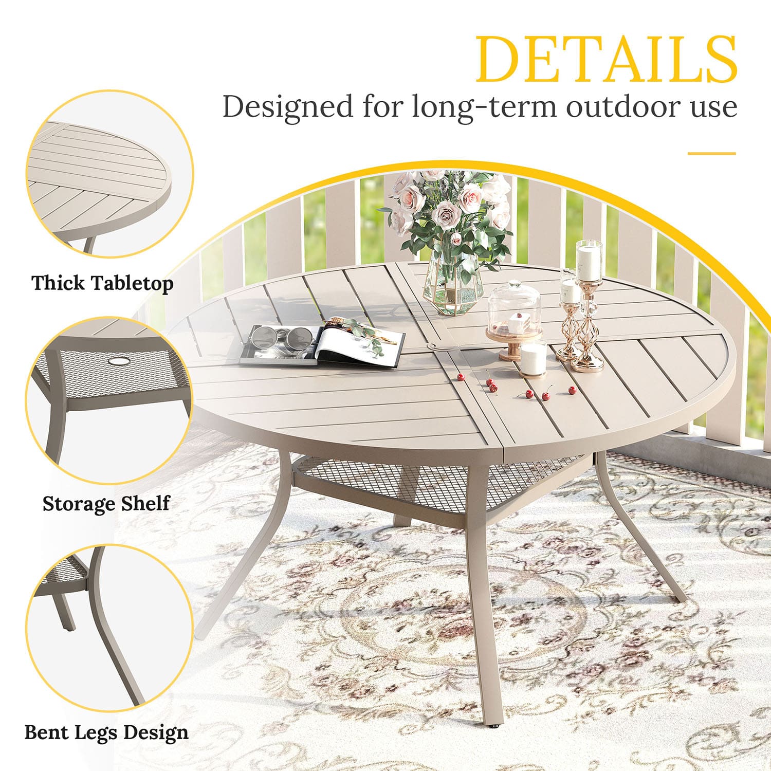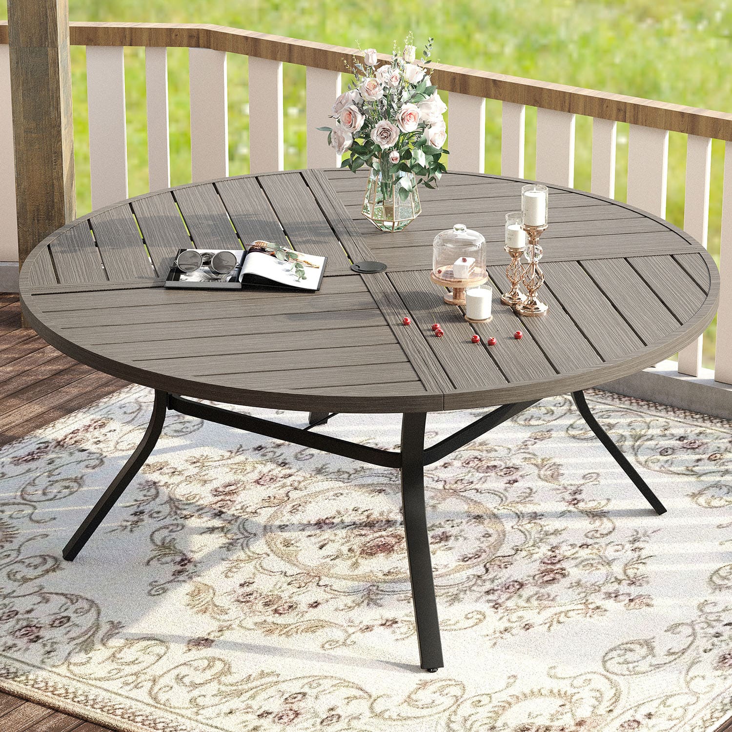 Grey Vicllax Round Patio Dining Table for 4/6/8, Outdoor Large Metal Table Black Vicllax Round Patio Dining Table for 4/6/8, Outdoor Large Metal Table Walnut Wood Grain Vicllax Round Patio Dining Table for 4/6/8, Outdoor Large Metal Table Grey Wood Grain Vicllax Round Patio Dining Table for 4/6/8, Outdoor Large Metal Table Cream Vicllax Round Patio Dining Table for 4/6/8, Outdoor Large Metal Table + 2 more