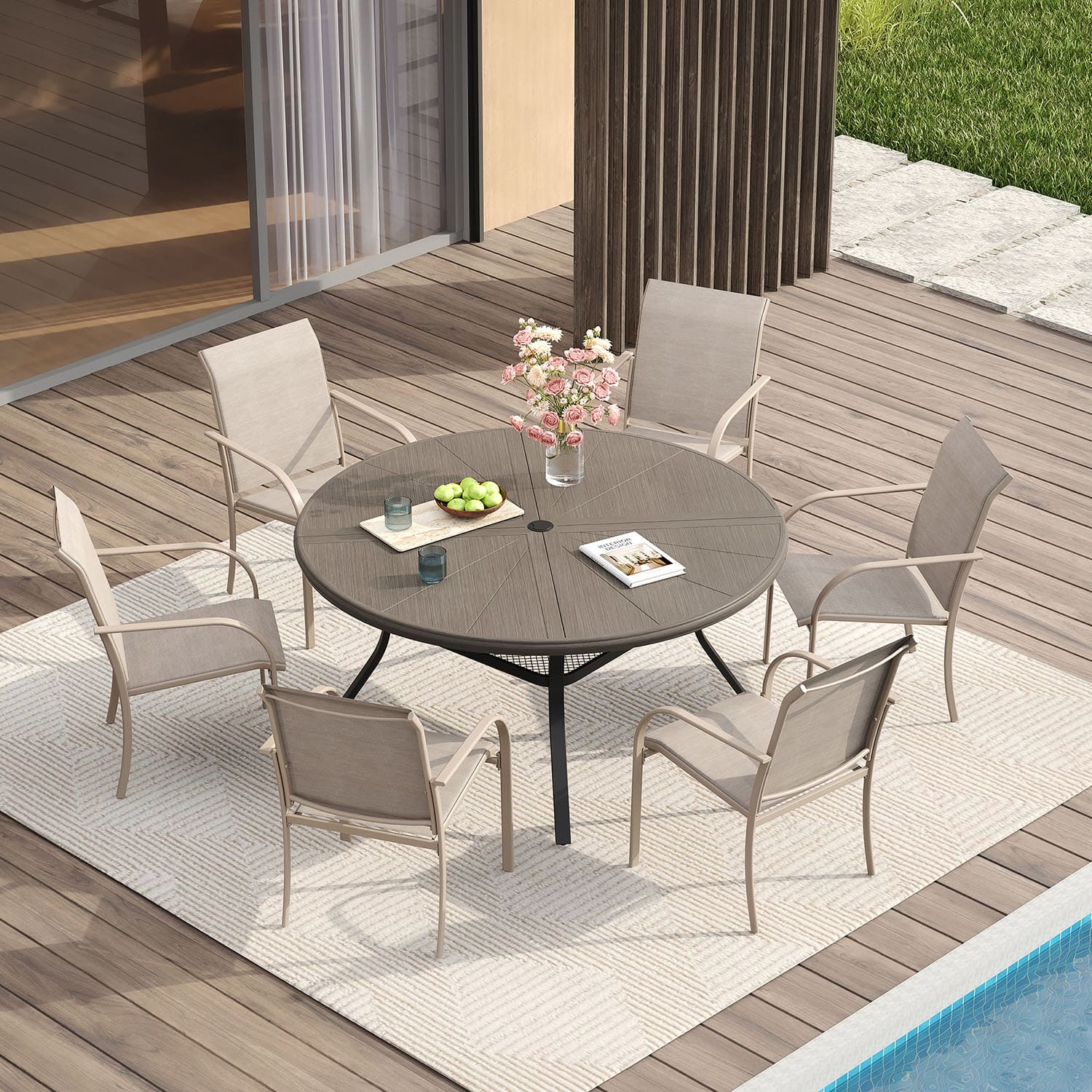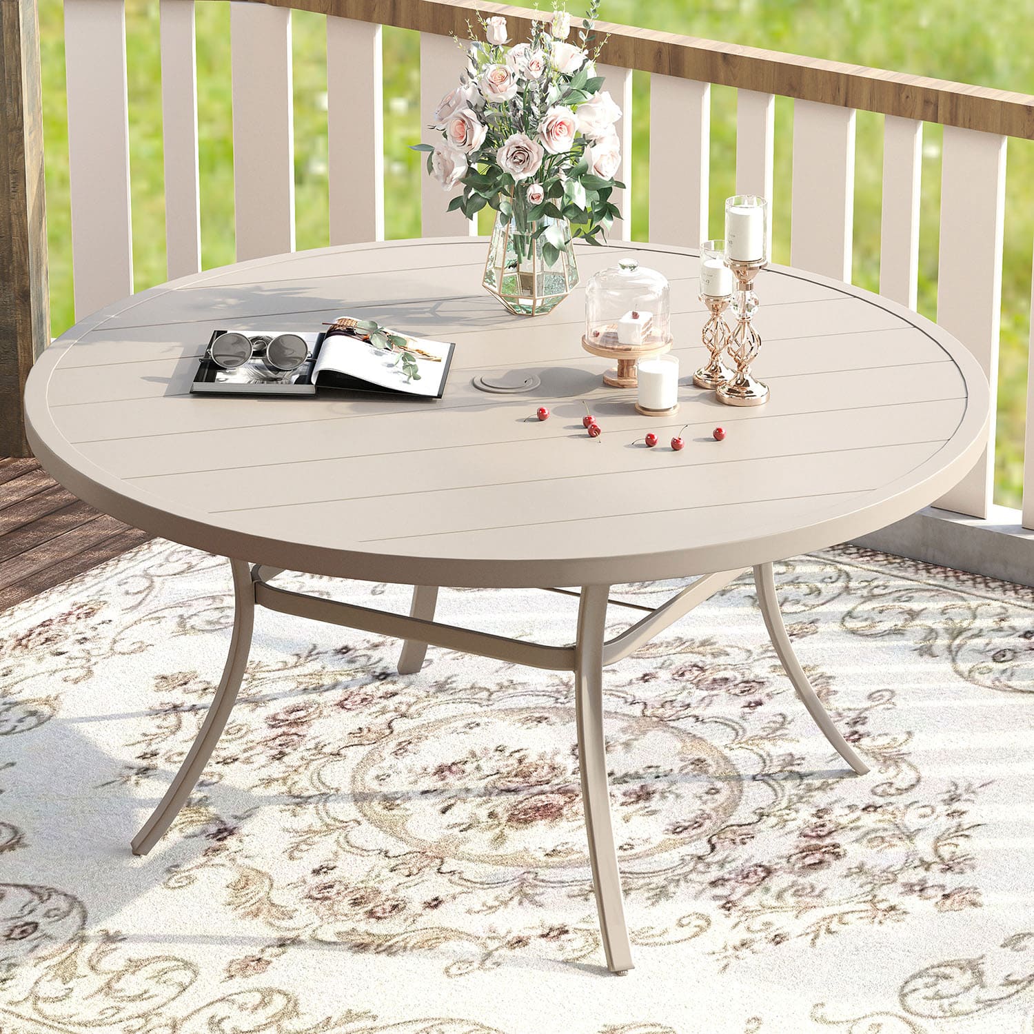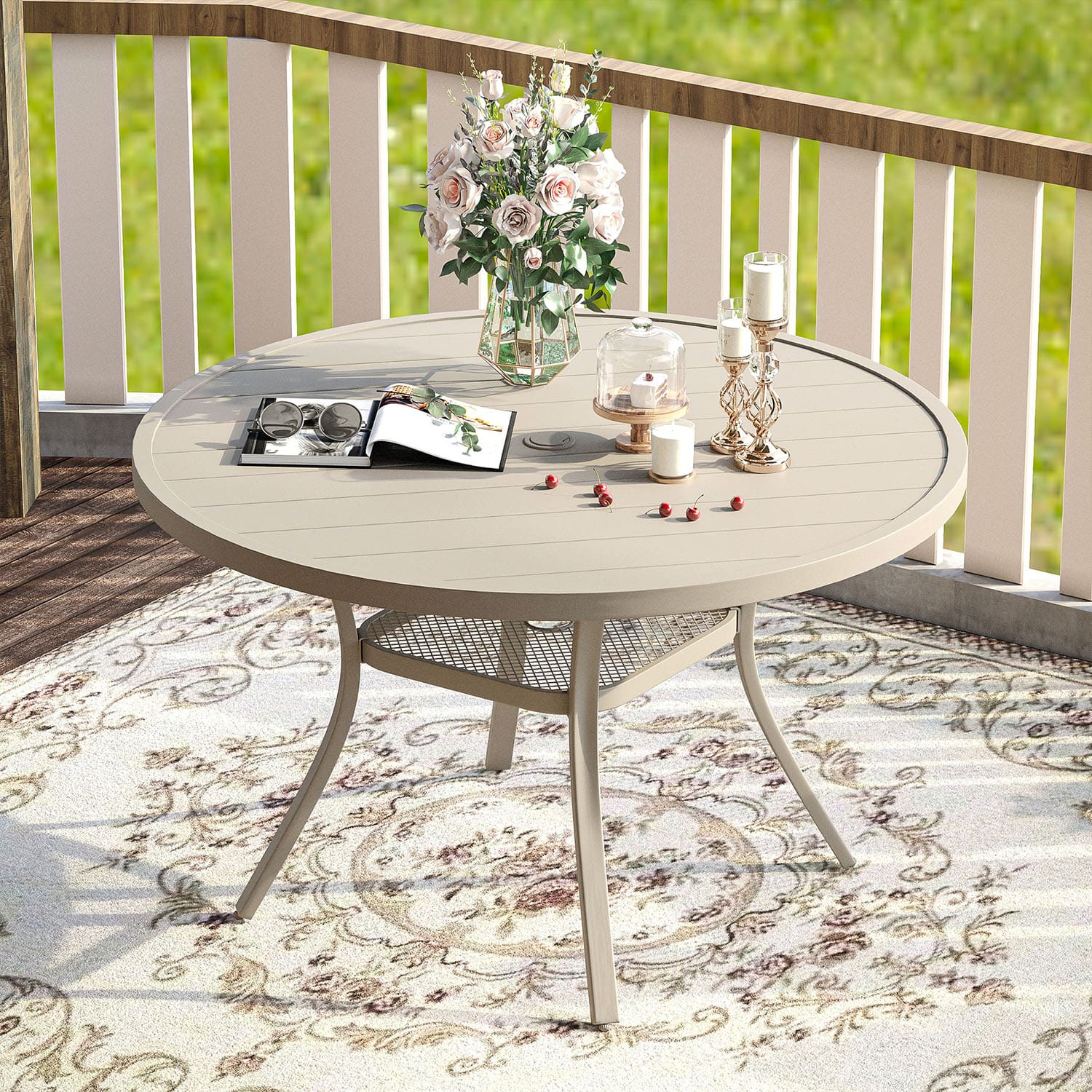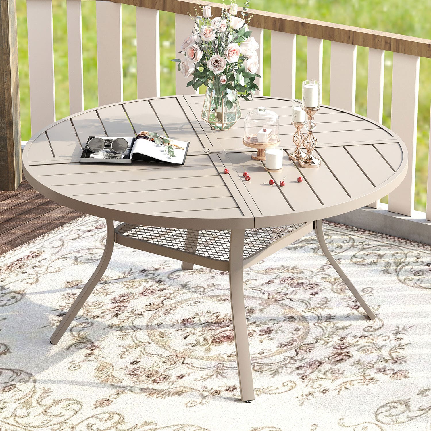 Grey Vicllax Round Patio Dining Table for 4/6/8, Outdoor Large Metal Table Black Vicllax Round Patio Dining Table for 4/6/8, Outdoor Large Metal Table Walnut Wood Grain Vicllax Round Patio Dining Table for 4/6/8, Outdoor Large Metal Table Grey Wood Grain Vicllax Round Patio Dining Table for 4/6/8, Outdoor Large Metal Table Cream Vicllax Round Patio Dining Table for 4/6/8, Outdoor Large Metal Table + 2 more