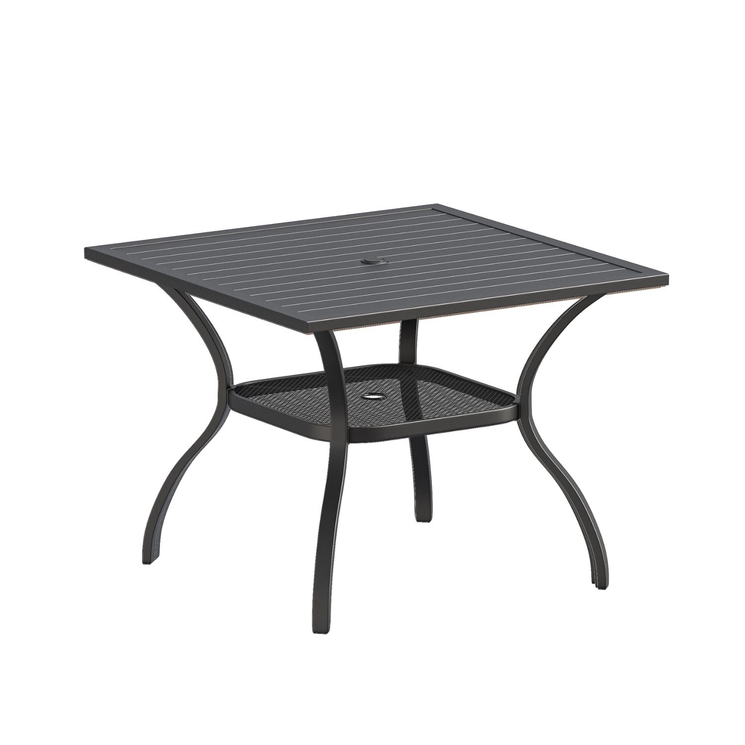 Vicllax Outdoor Patio Dining Table for 4, Metal Square Table with Storage