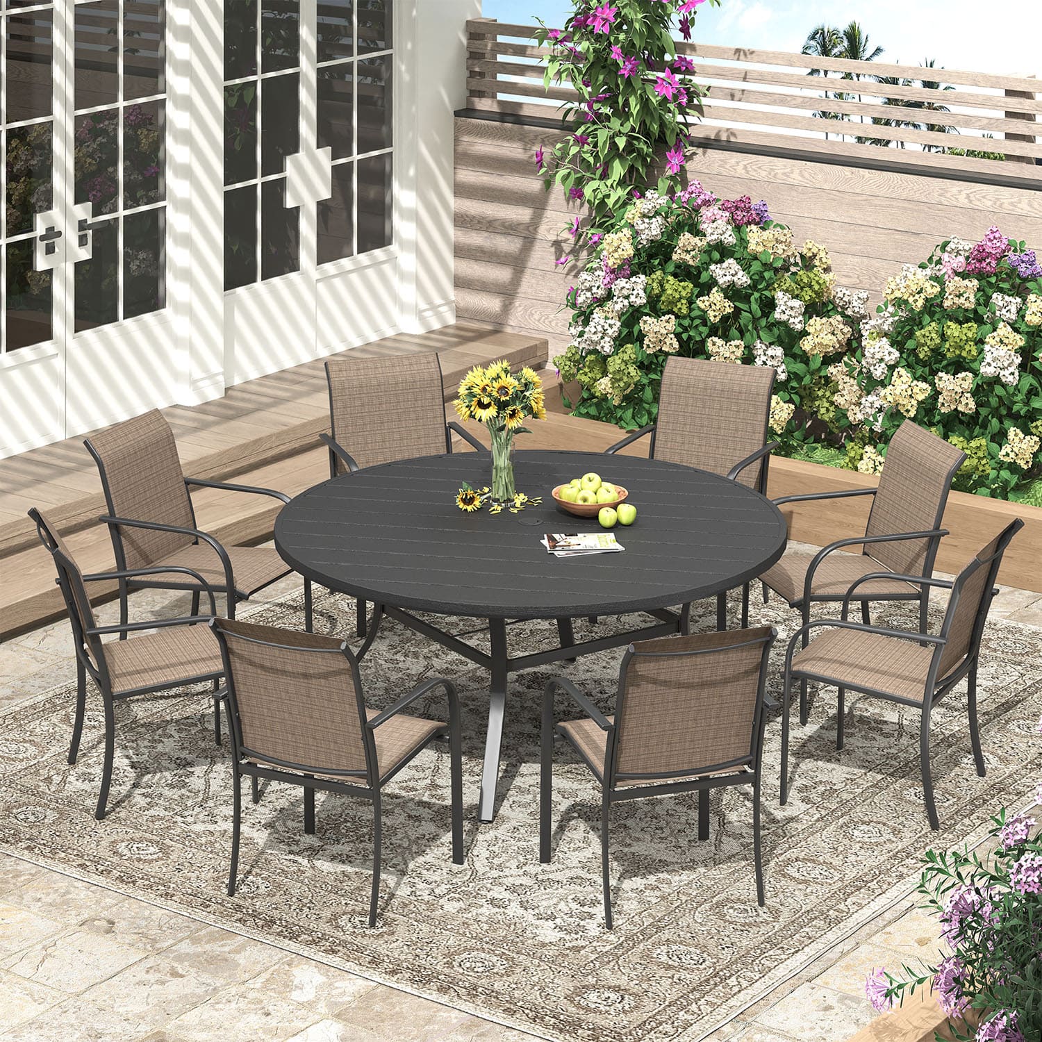 Vicllax Round Patio Dining Table for 4/6/8, Outdoor Large Metal Table