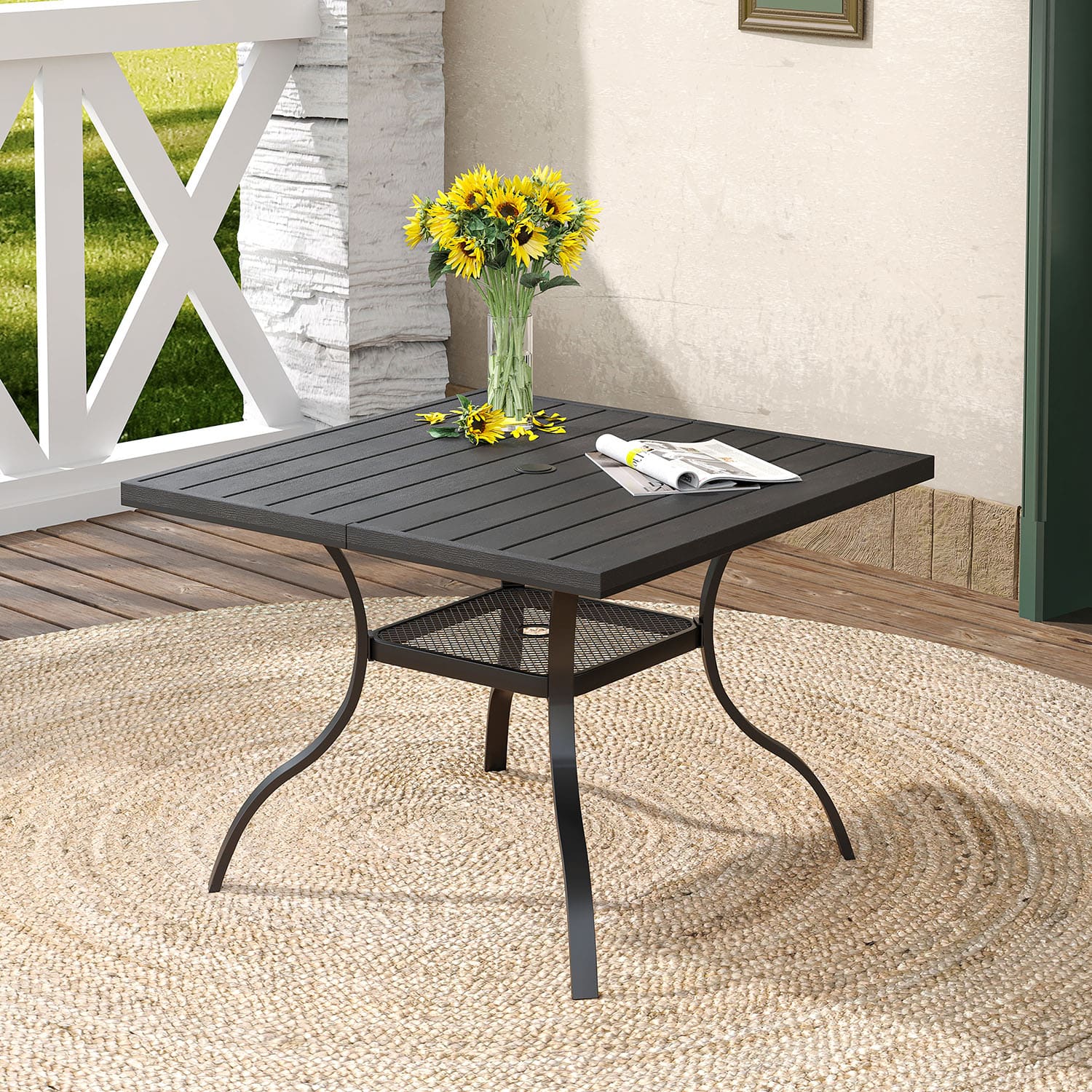 Grey Vicllax Outdoor Patio Dining Table for 4, Metal Square Table with Storage Grey Wood-like Tabletop Vicllax Outdoor Patio Dining Table for 4, Metal Square Table with Storage Walnut Wood-like Tabletop Vicllax Outdoor Patio Dining Table for 4, Metal Square Table with Storage Black Vicllax Outdoor Patio Dining Table for 4, Metal Square Table with Storage + 1 more