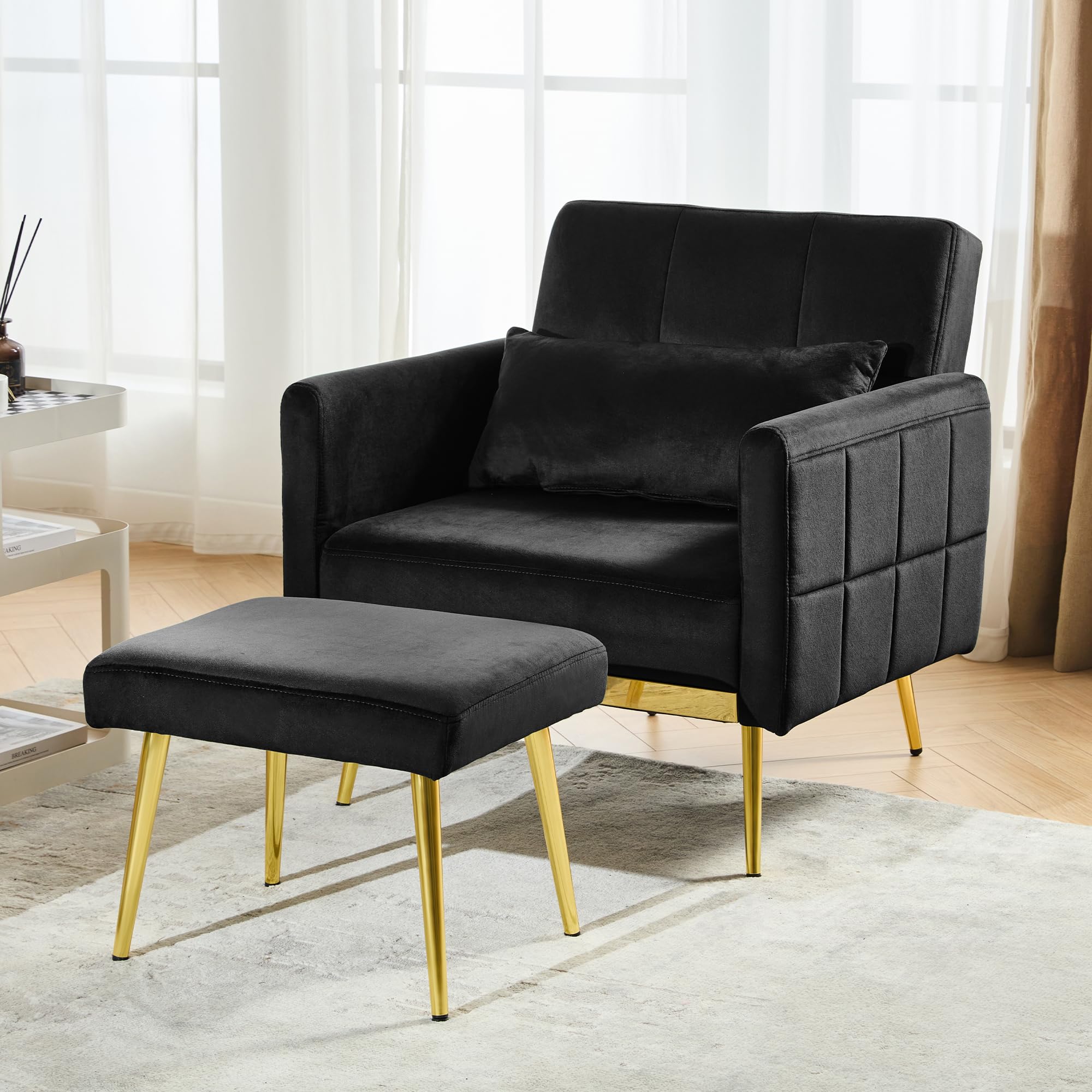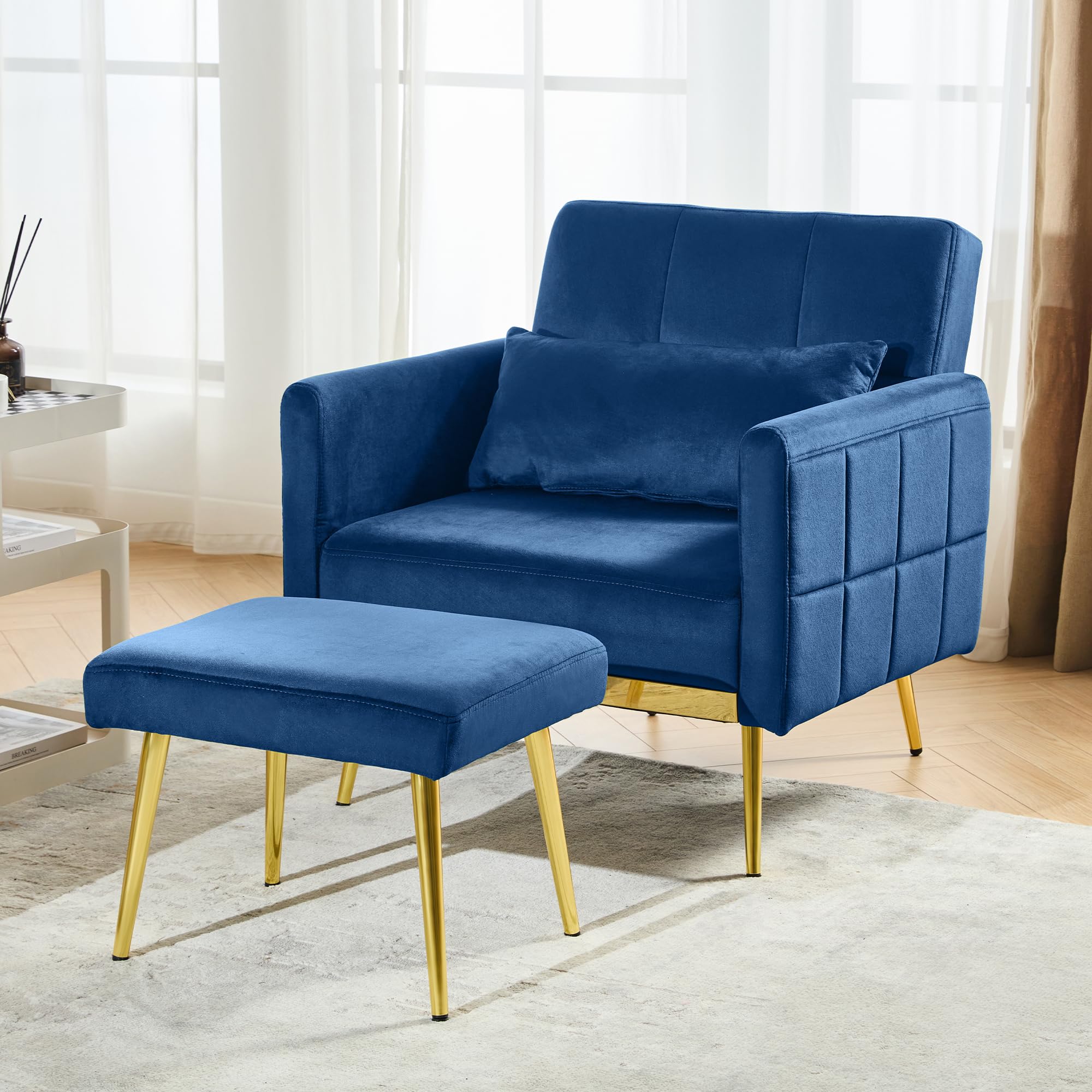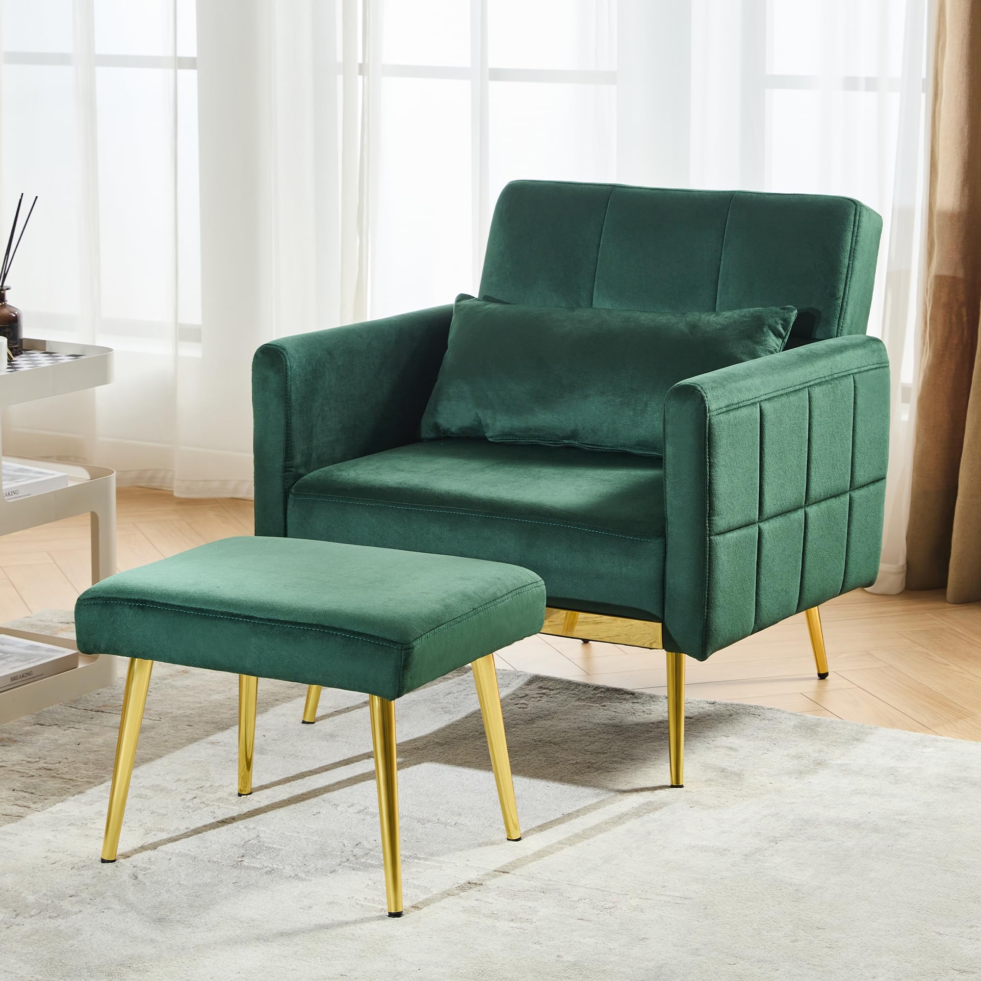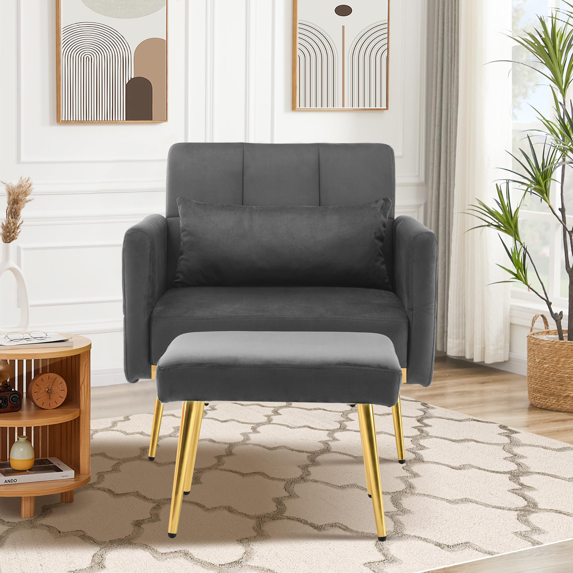 Josie Velvet Accent Single Recliner Armchair with Ottoman and Pillow