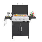 - POWERFUL COOKING PERFORMANCE: Equipped with 3 stainless steel burners and a side burner, this griddle grill combo delivers a total of 36,000 BTU of cooking power. The battery-operated electronic ignition system ensures quick and reliable startup with the push of a knob, providing precise heat control for effortless grilling