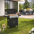- THOUGHTFUL DESIGN FEATURES: Our gas griddle boasts a double-layer lid for superior heat retention, ensuring your food stays warm and flavorful. Monitor cooking temperatures in real-time with the built-in thermometer. Fixed slots for a rotisserie kit and galvanized casters for easy mobility further enhance its functionality and convenience