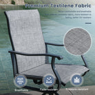 - Robust Metal Build: Crafted with premium metal, this dining set ensures enduring durability, providing a reliable base for outdoor gatherings.