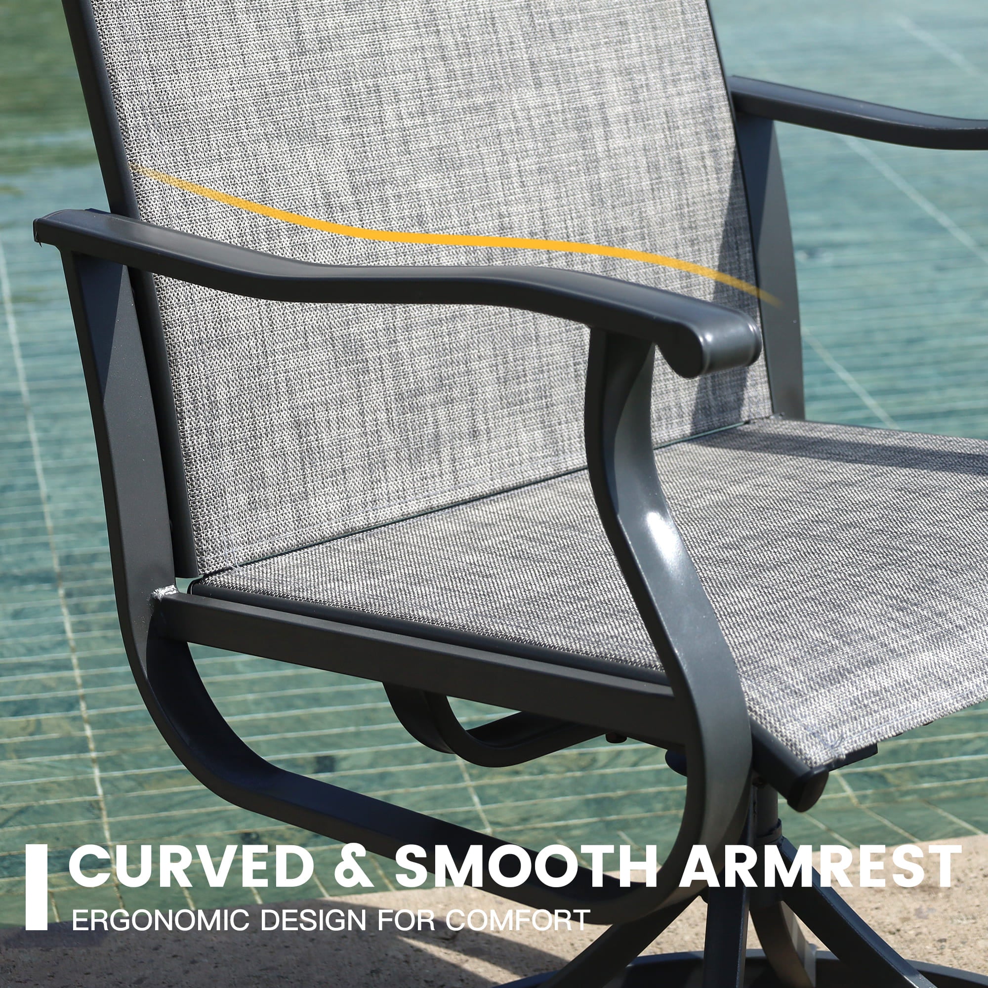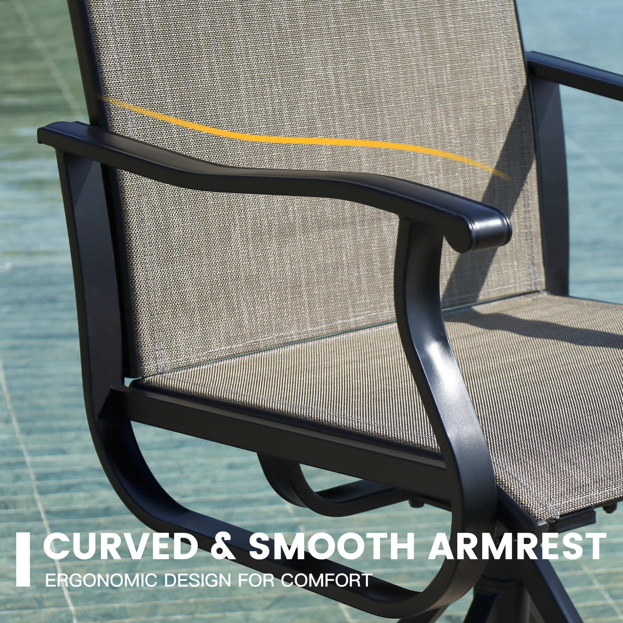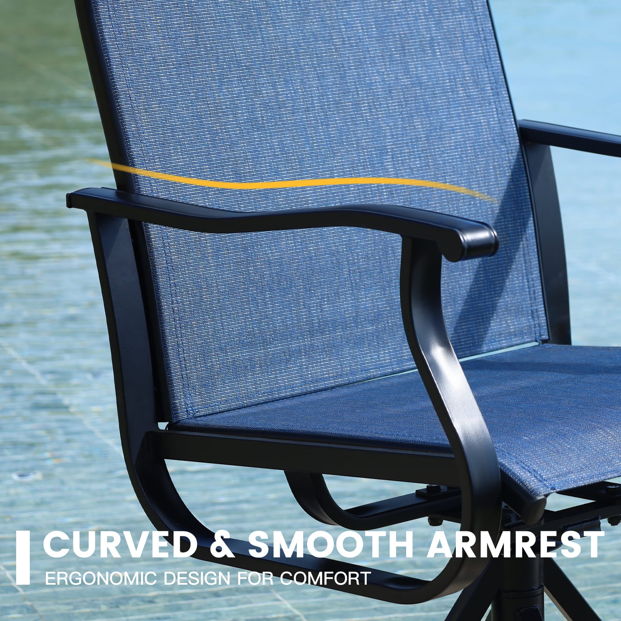 - Textilene&Padded Swivel Chairs: Enjoy luxurious comfort with our padded Textilene seating, offering support and breathability. Plus, experience versatile dining with 360-degree swivel functionality.