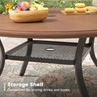 Vicllax Outdoor Round Dining Table, Patio Aluminum Tabletop with Storage Shelf