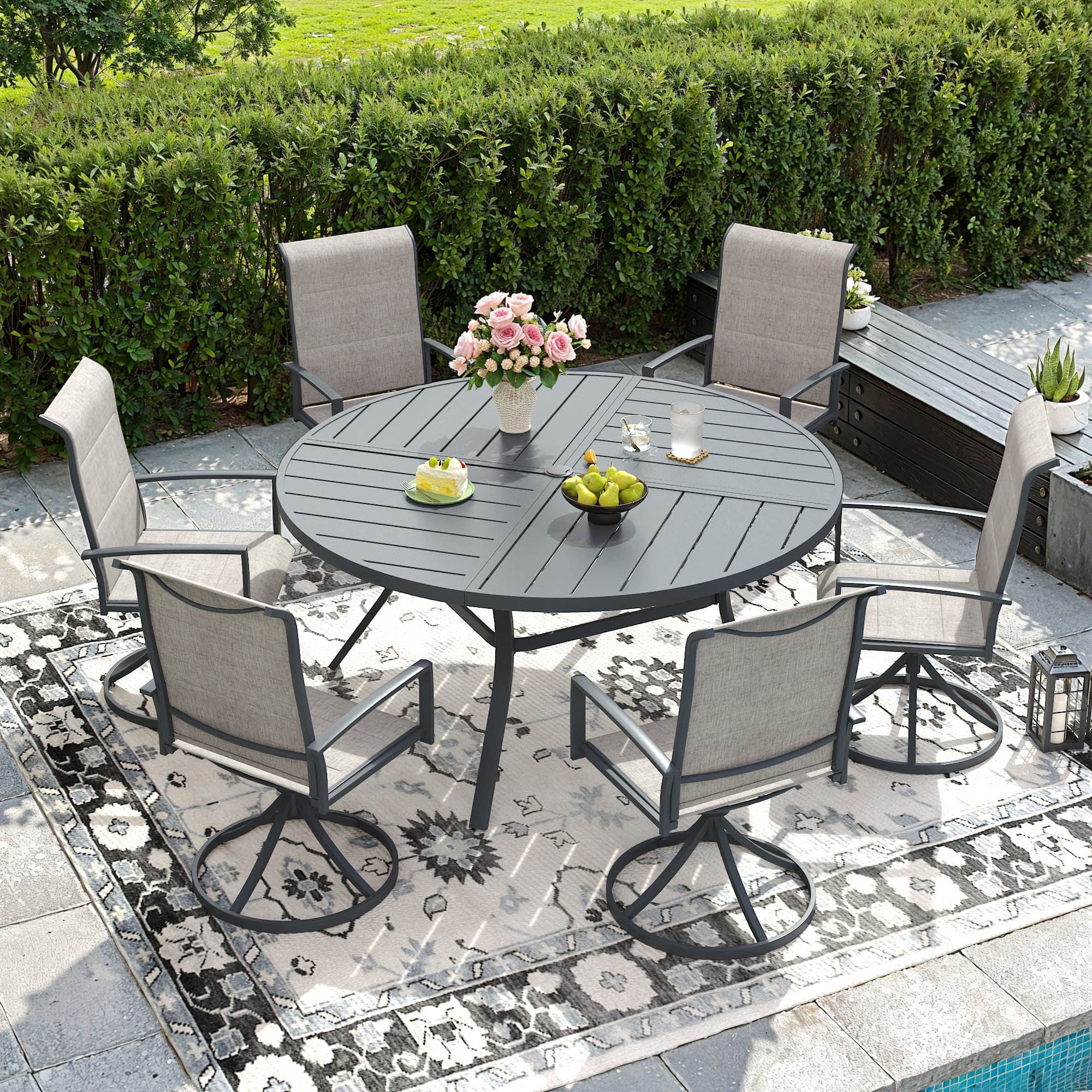 Vicllax 7 Pieces Outdoor Dining Set, 53.1" Metal Round Dining Table and Premium Swivel Chairs