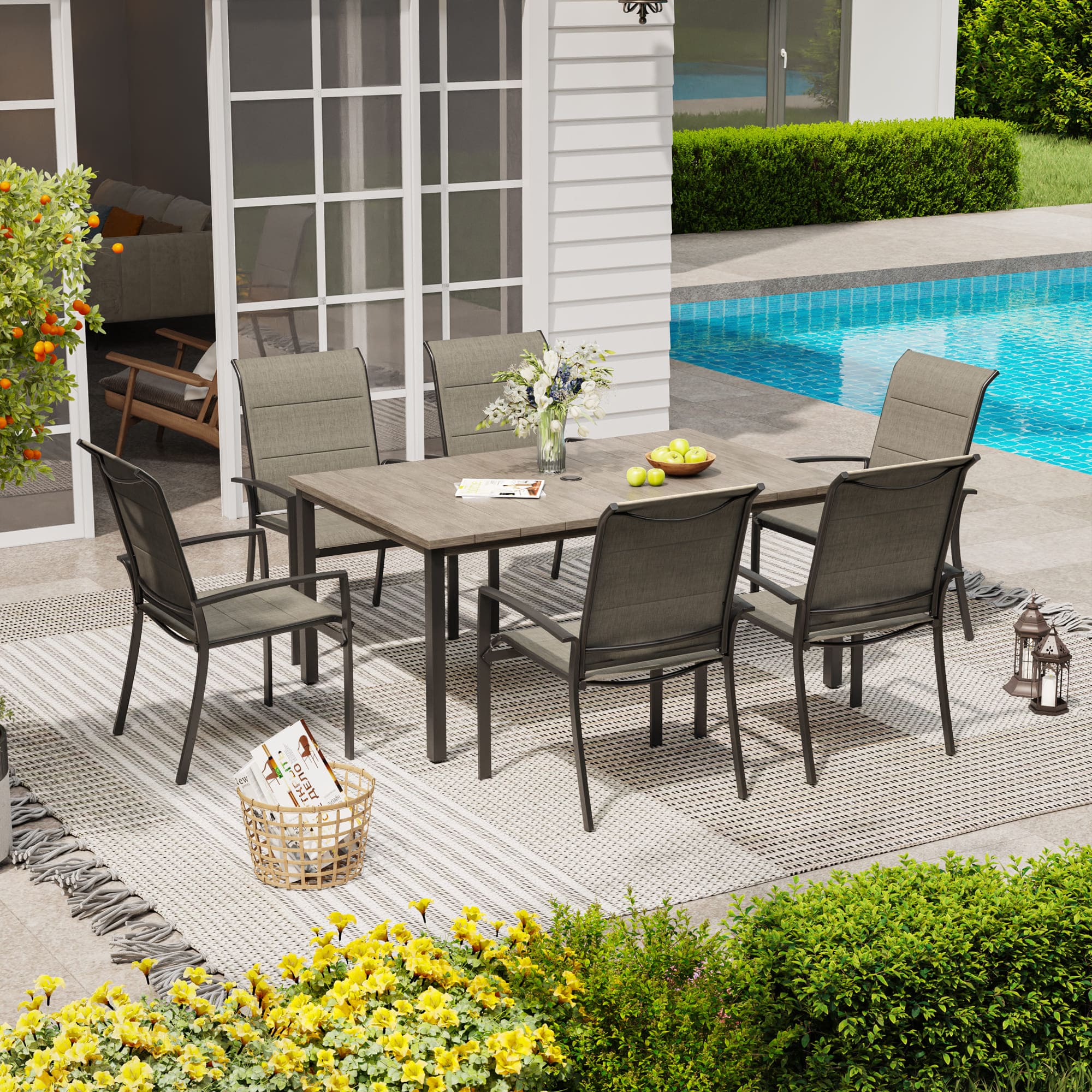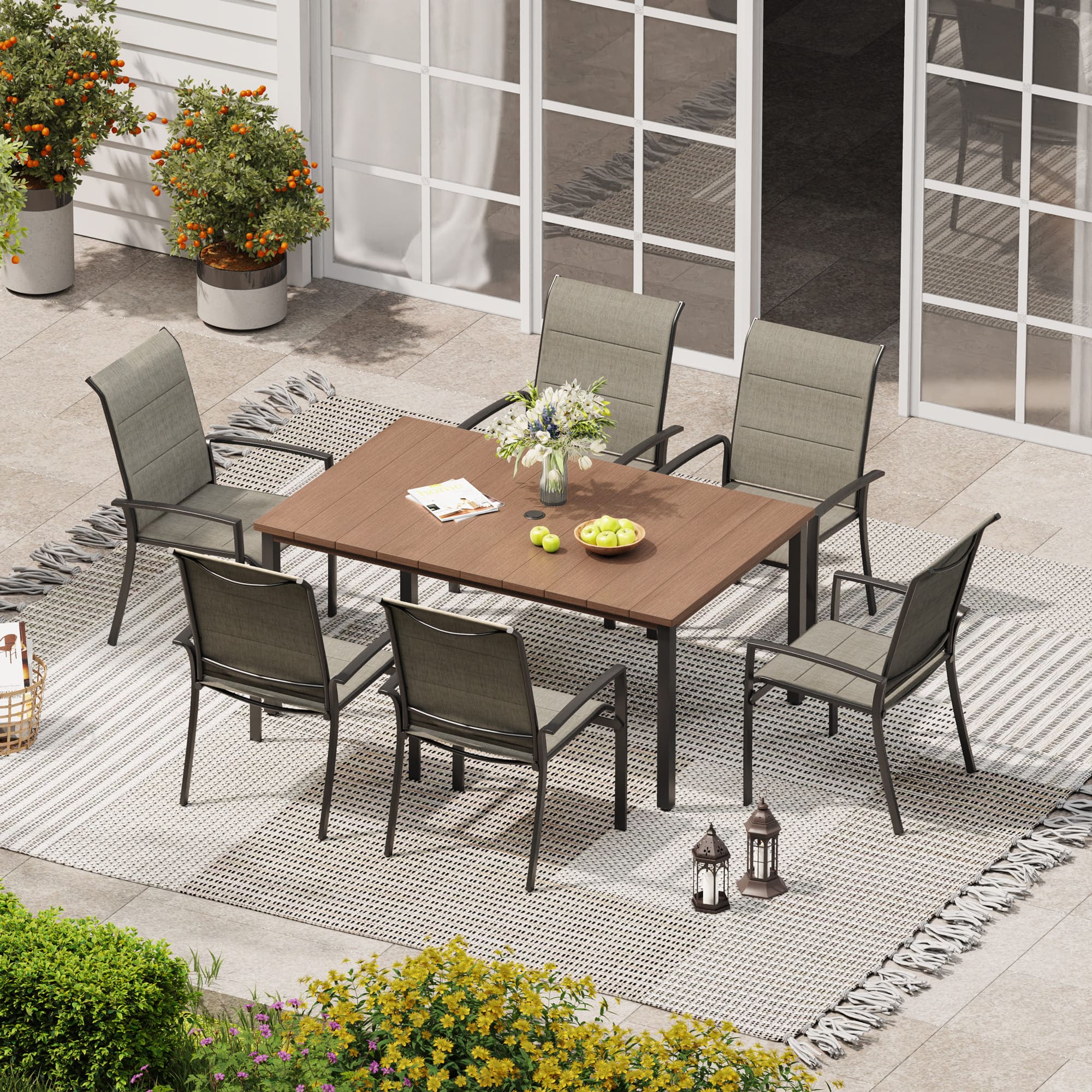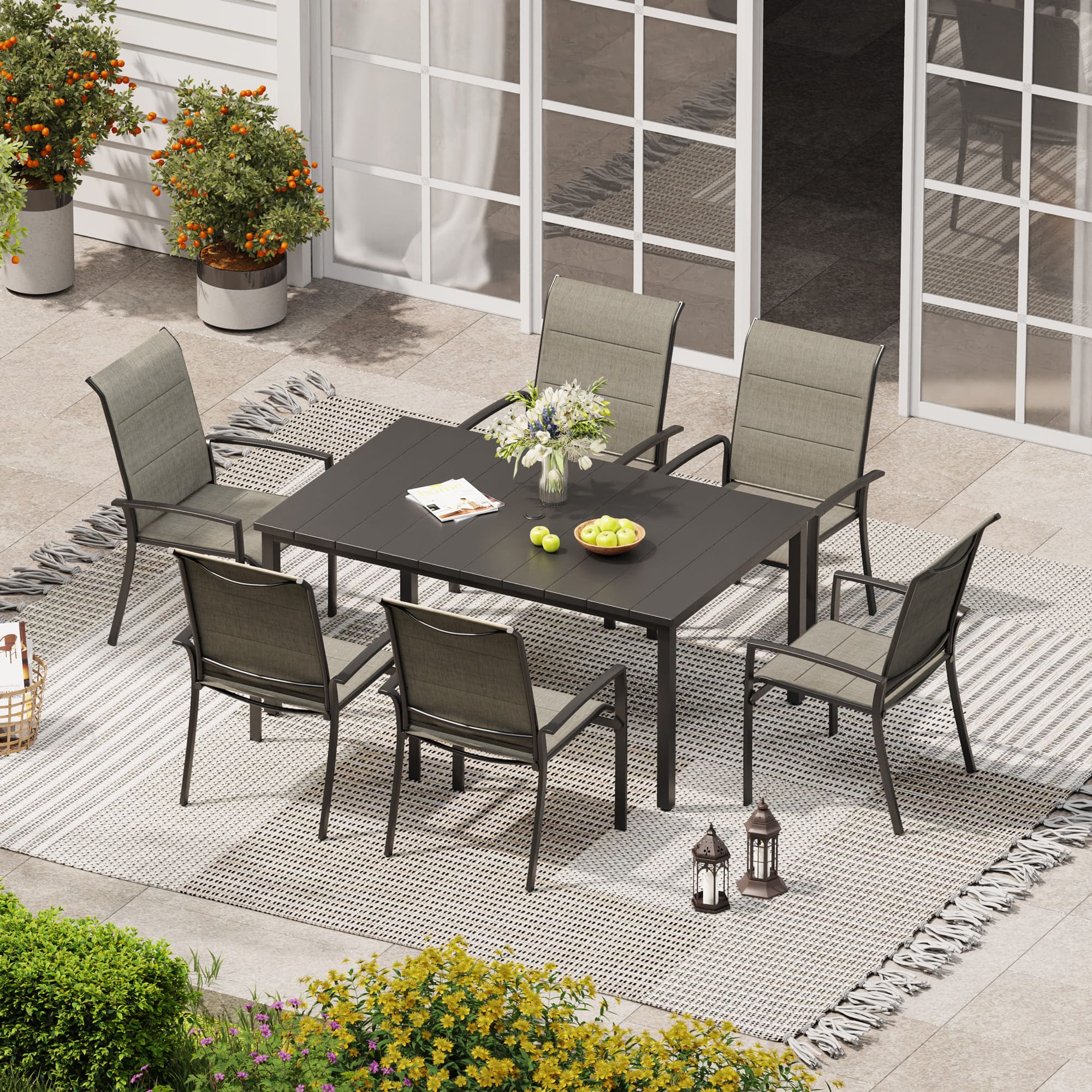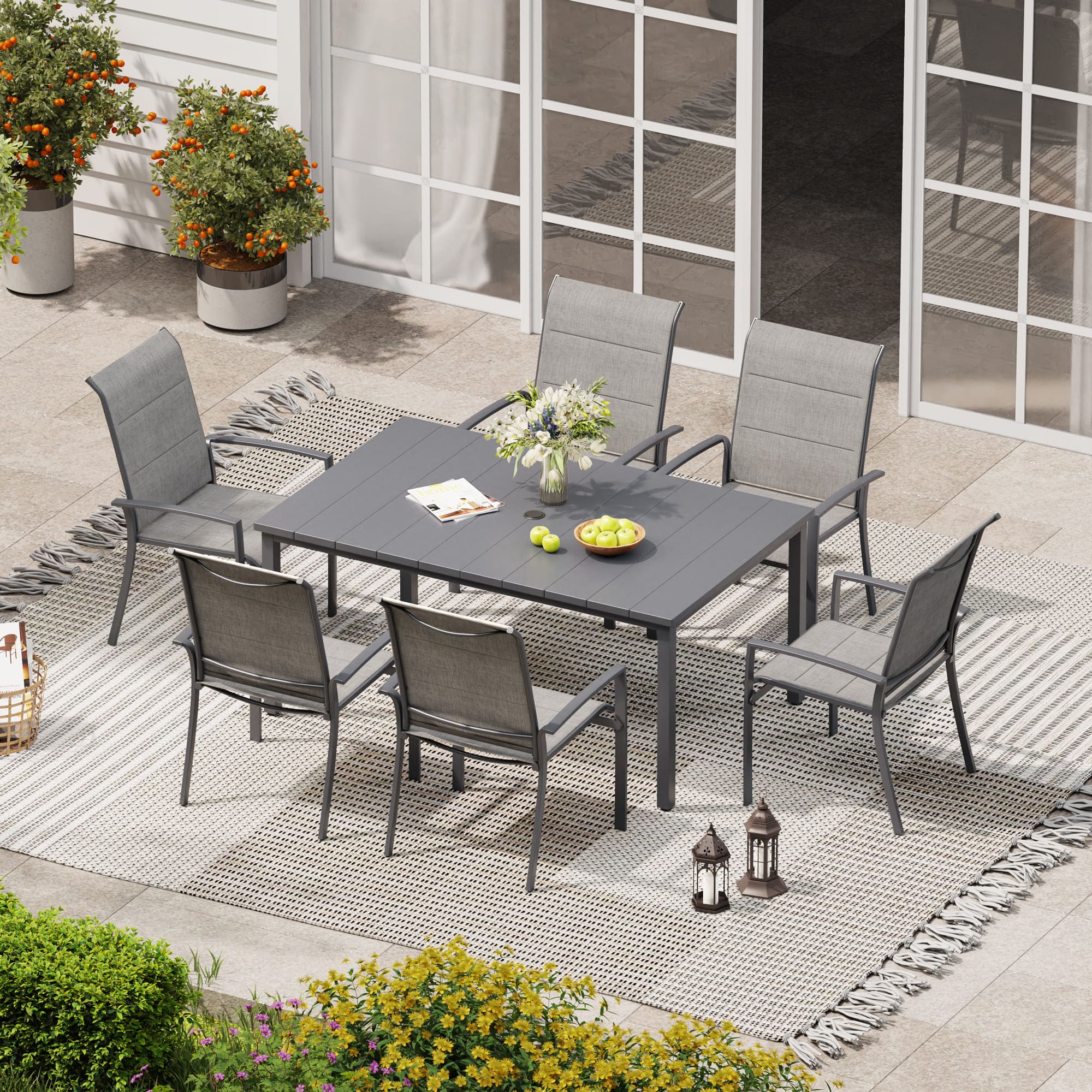 Vicllax 7 Pieces Outdoor Dining Set with Metal Rectangular Table and Stackable Padded Sling Chair