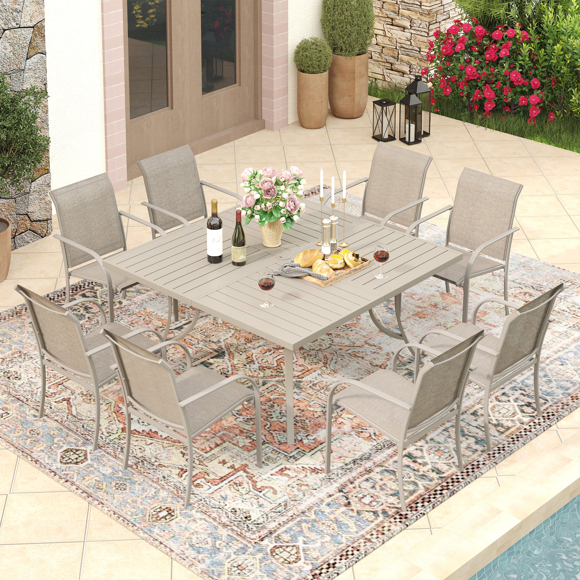 Vicllax 59" Square Patio Dining Table for 8, Outdoor Large Metal Table (Sandshell)