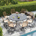 Vicllax 9-Piece Outdoor Dining Set, 63” Round Metal Table with Umbrella Hole & Solana Swivel Chair