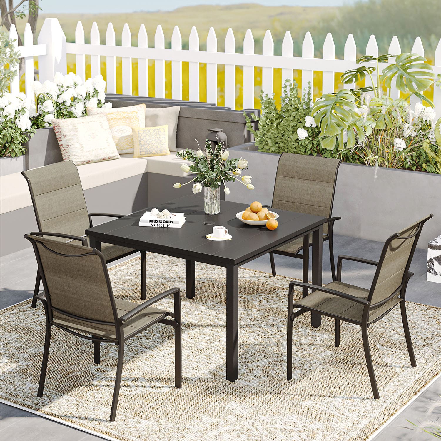 Vicllax 5 Pieces Outdoor Dining Set with 40" Square Table and Padded Stackable Chairs