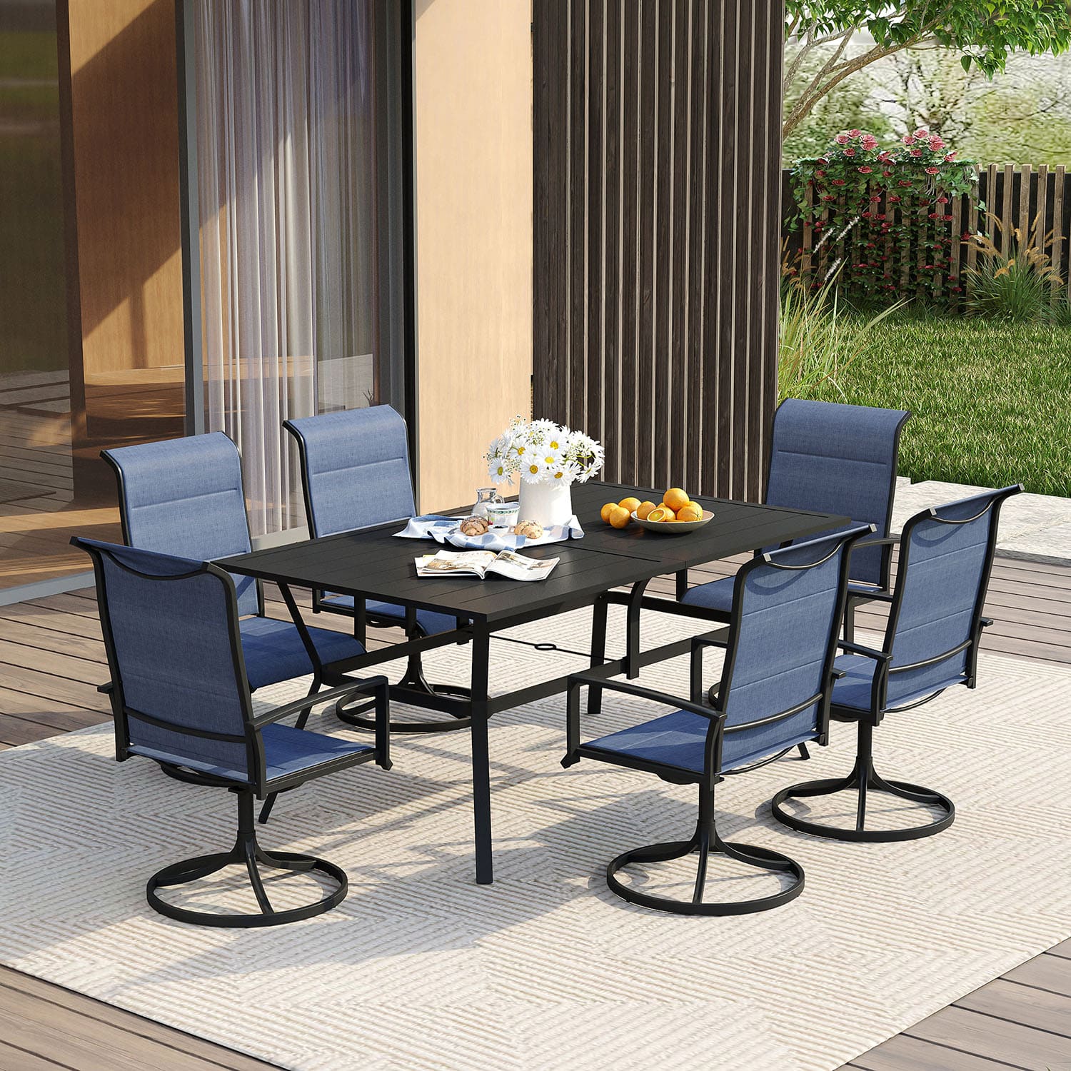 Vicllax 7 Pieces Outdoor Dining Set with Metal Rectangular Table and Swivel Chair