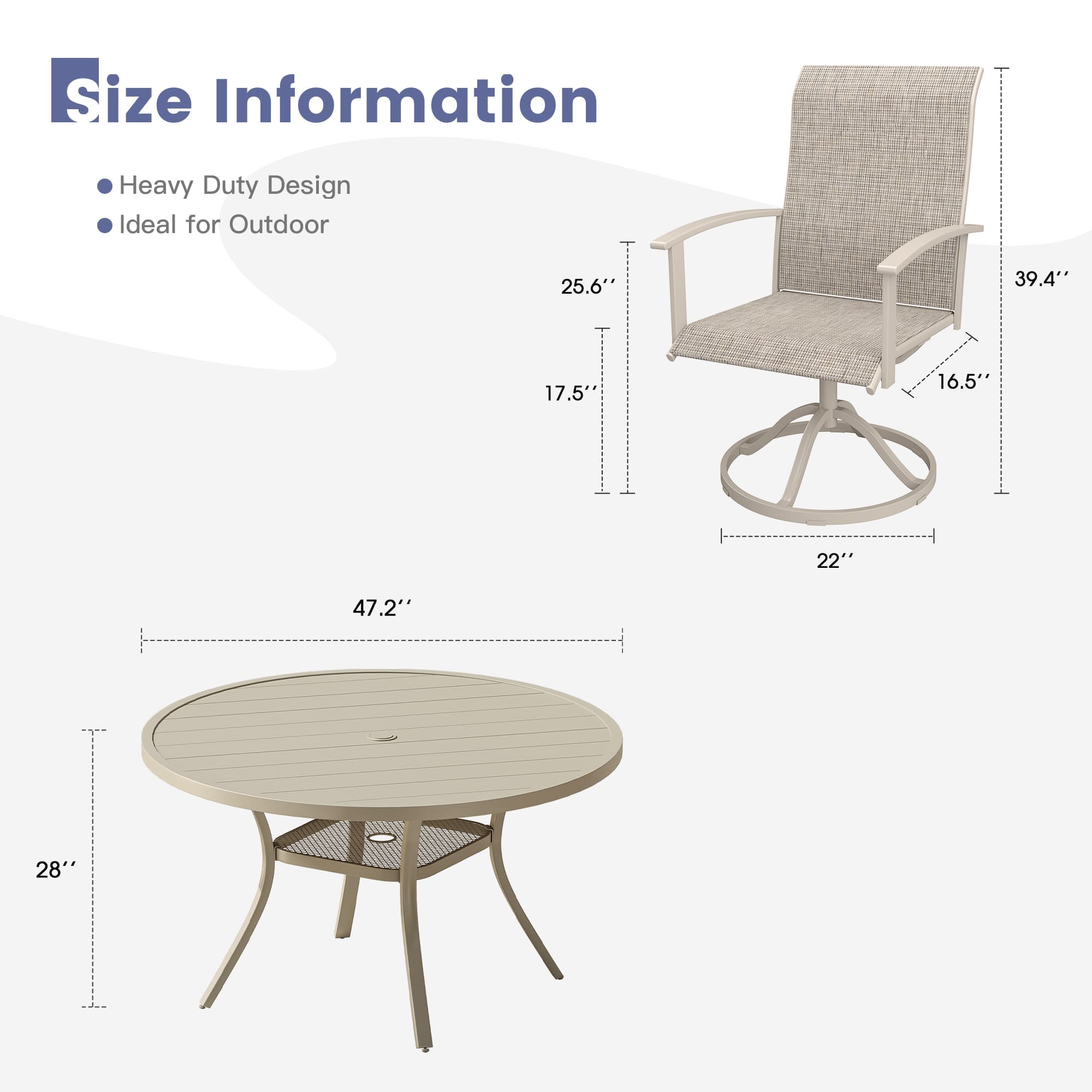 - 【360-Degree Rotation Function】: Enjoy outdoor dining with chairs that spin 360°. Sturdy bases ensure safe and smooth rotation.