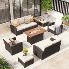 Vicllax Patio Sofa Set, Wicker Outdoor Conversation Set with Cushioned Sofa Chairs with Wicker Fire Pit, Stable Chair