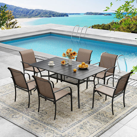 Vicllax 7 Pieces Outdoor Dining Set with Metal Rectangular Table and Stackable Sling Chair