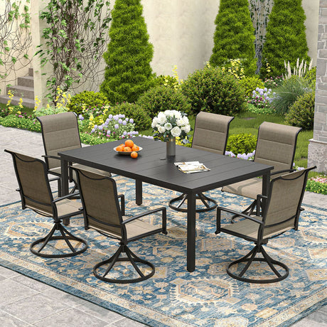 Vicllax 7 pcs Outdoor Dining Set, Rectangular Metal Table and 6 Textilene Swivel Dining Chairs