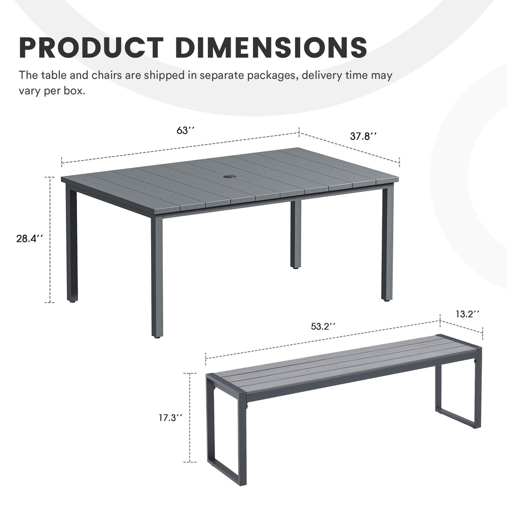 Compact Rectangular Design: Optimize outdoor space with a space-saving rectangular table and bench set, perfect for intimate gatherings or cozy meals.