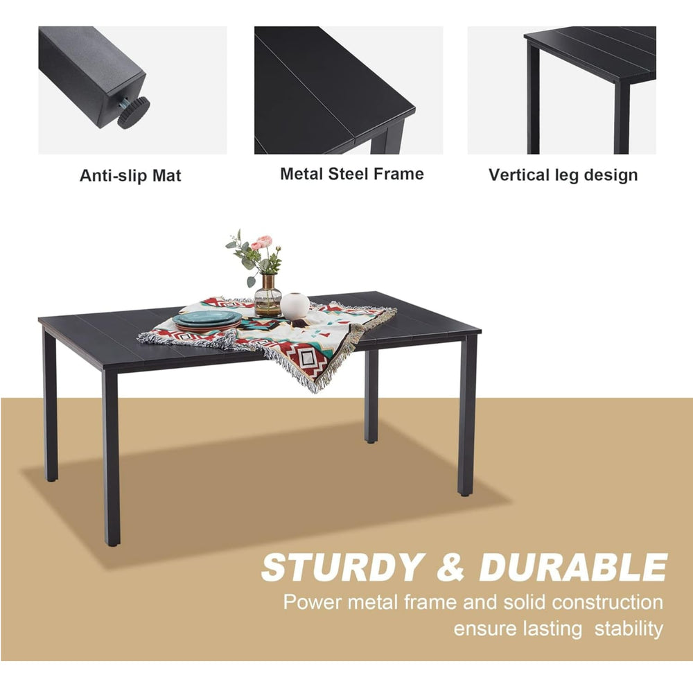 Vicllax 3-Piece Rectangular Metal Outdoor Dining Table and Bench Set - Bench2 / Walnut Wood Grain is backordered and will ship as soon as it is back in stock.