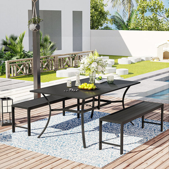 Compact Rectangular Design: Optimize outdoor space with a space-saving rectangular table and bench set, perfect for intimate gatherings or cozy meals.