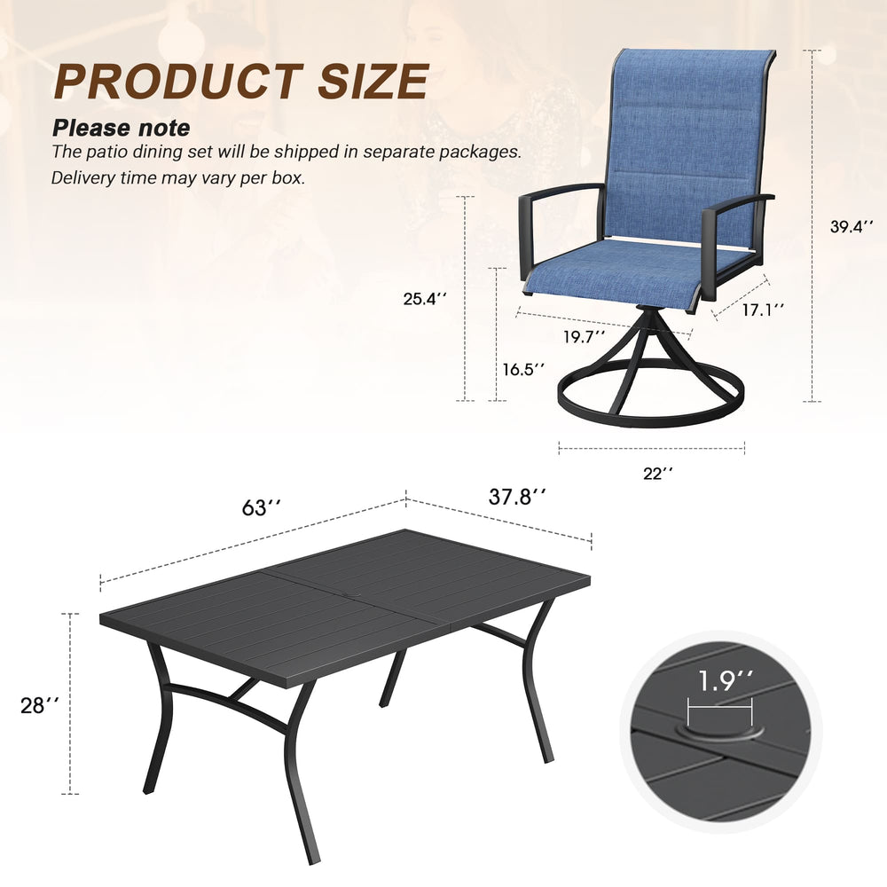 Vicllax 7 Pieces Outdoor Dining Set with Metal Rectangular Table and Padded Swivel Chair
