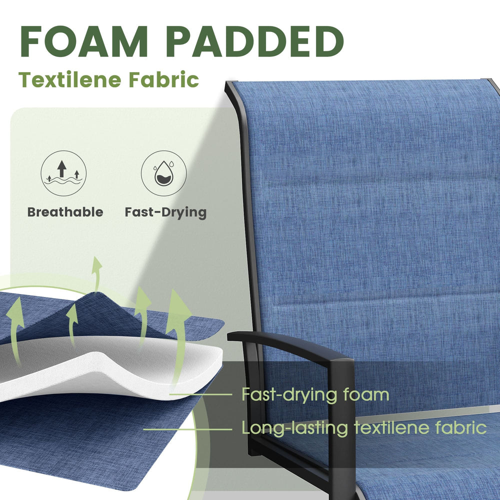 • Textilene&Padded Swivel Chairs: Enjoy luxurious comfort with our padded Textilene seating, offering support and breathability. Plus, experience versatile dining with 360-degree swivel functionality.