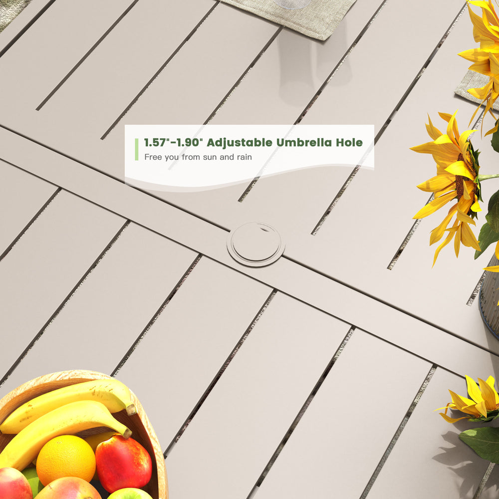 • Durable Metal Construction: Crafted with sturdy metal, the dining set ensures long-lasting durability and stability, making it a reliable choice for outdoor use.