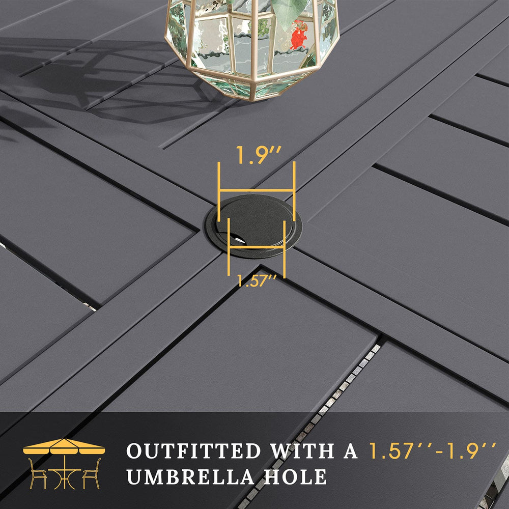 - Robust Metal Build: Crafted with premium metal, this dining set ensures enduring durability, providing a reliable base for outdoor gatherings.